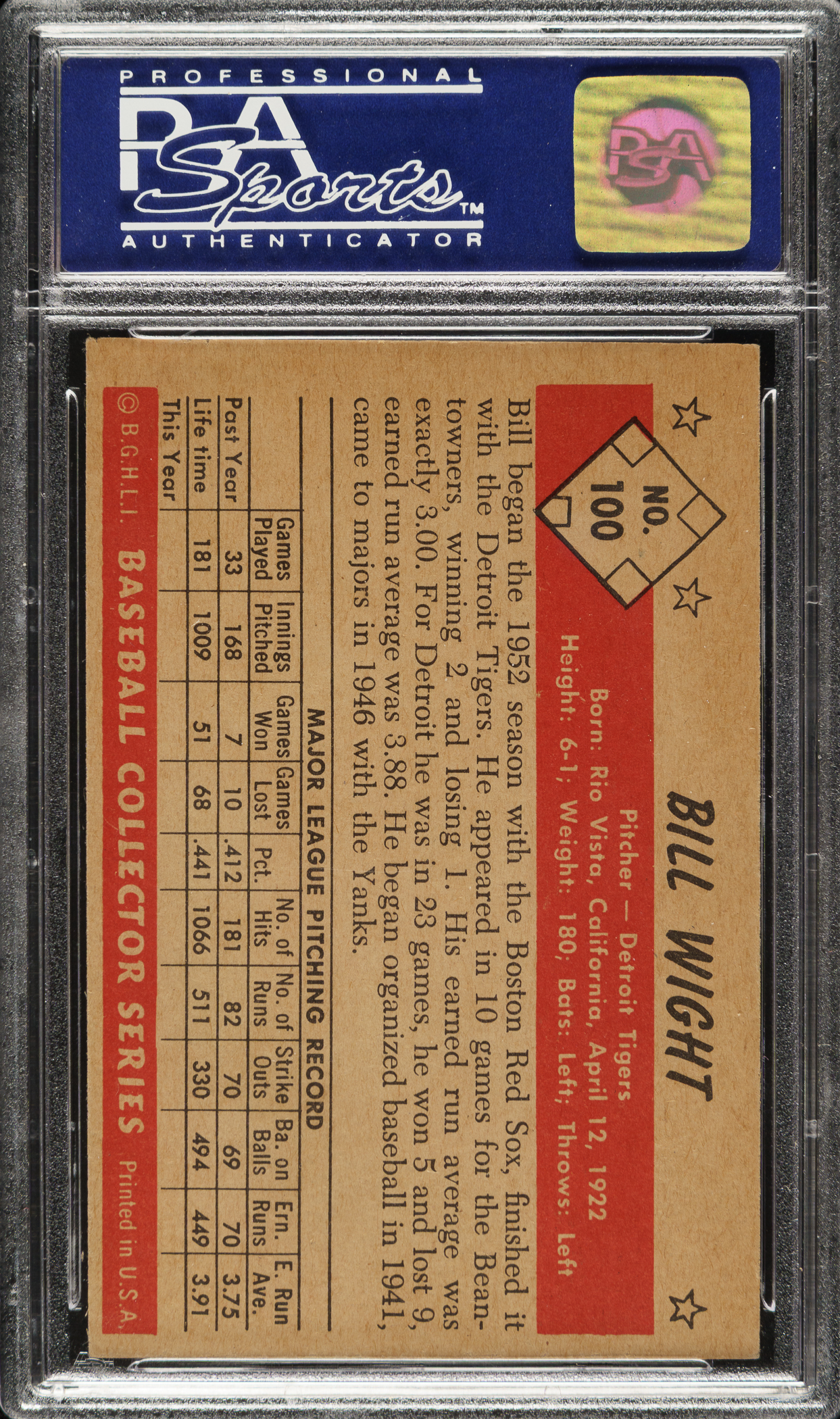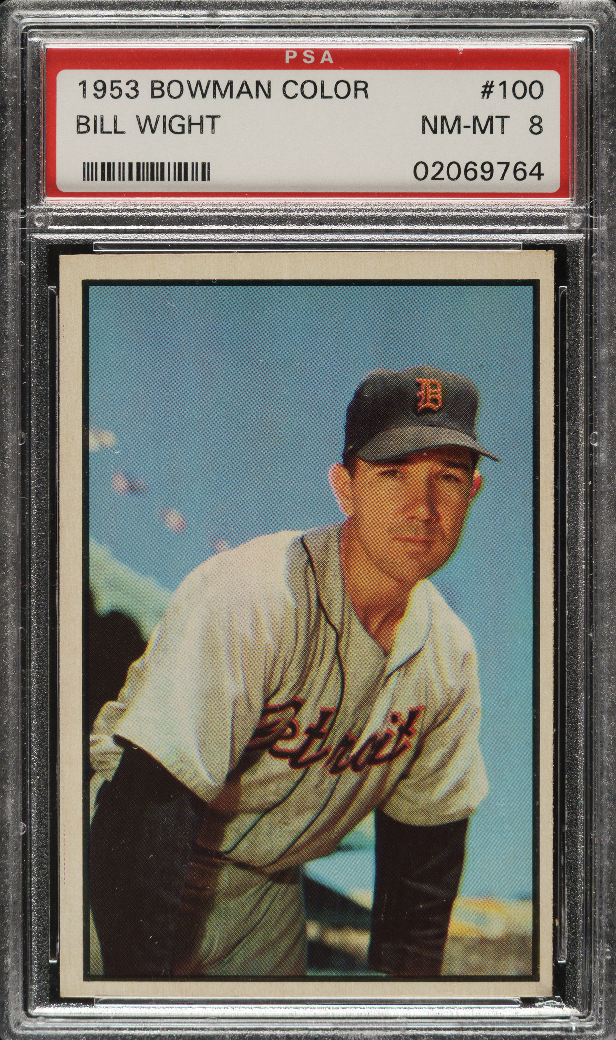 Lot # 1518: 1953 Bowman Color #100 Bill Wight PSA NM-MT 8