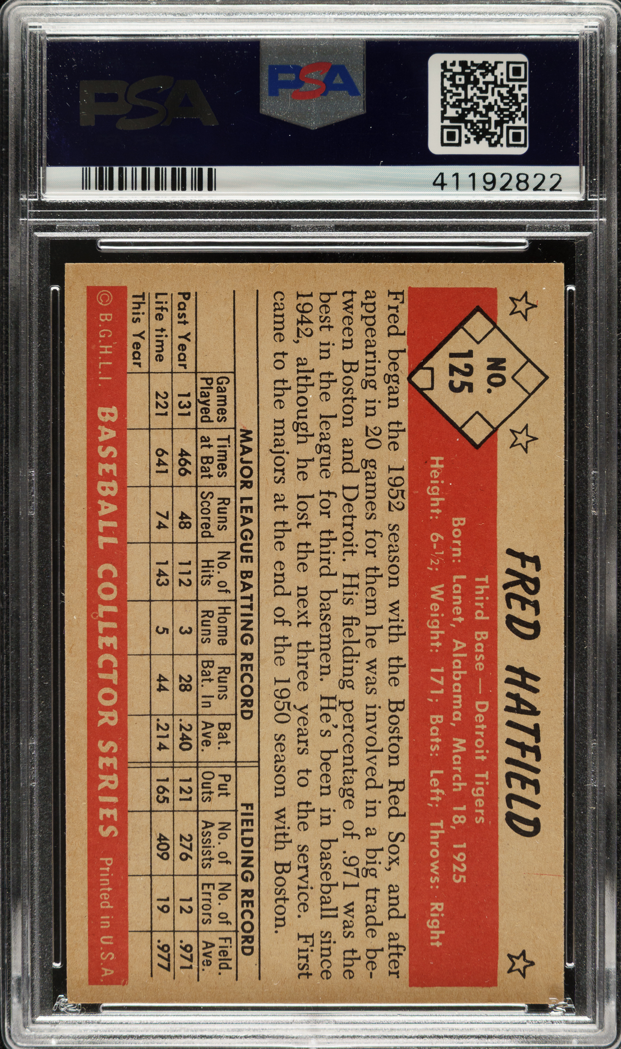 Graded NM 7 by PSA. Detroit Tigers.