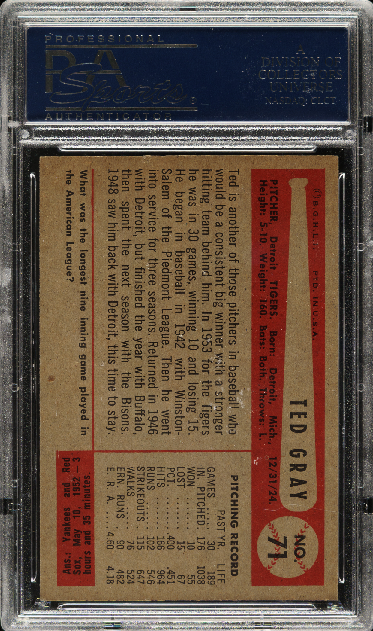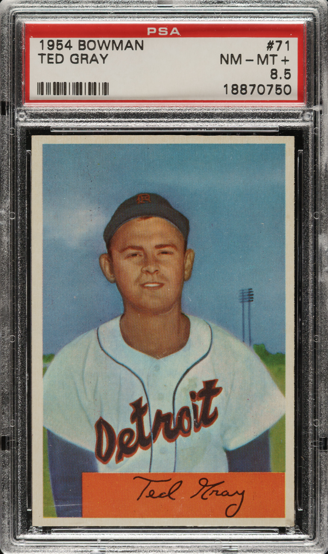 Lot # 1573: 1954 Bowman #71 Ted Gray PSA NM-MT+ 8.5