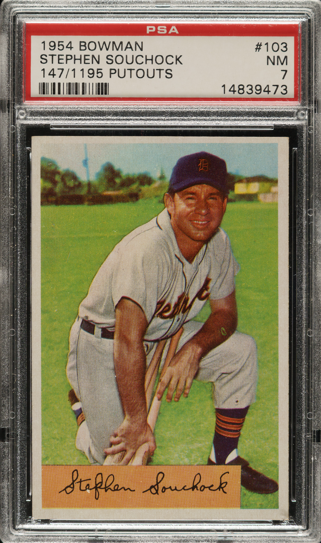 Lot # 1554: 1954 Bowman #103 Stephen Souchock PSA NM 7