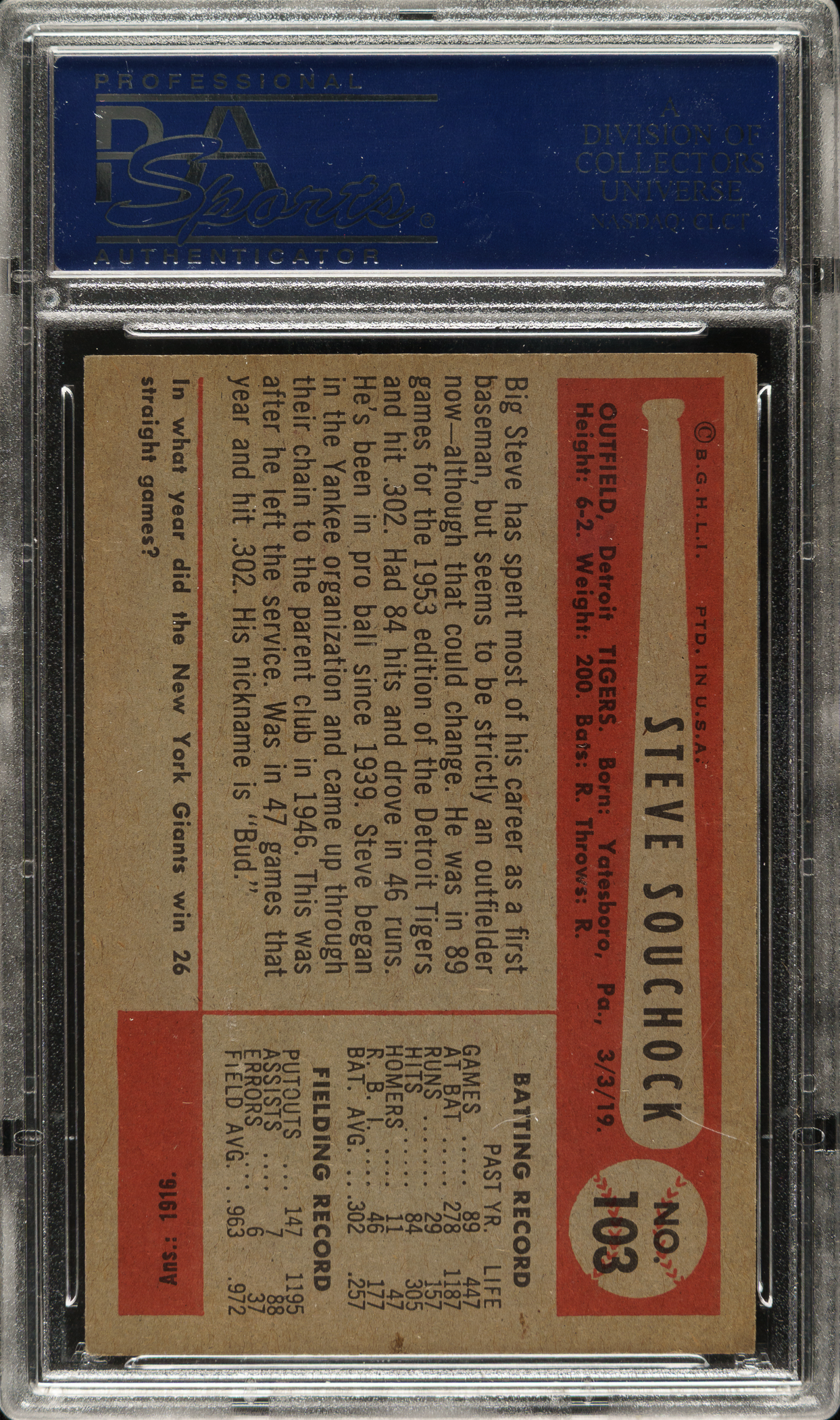 Graded NM 7 by PSA. Detroit Tigers.
