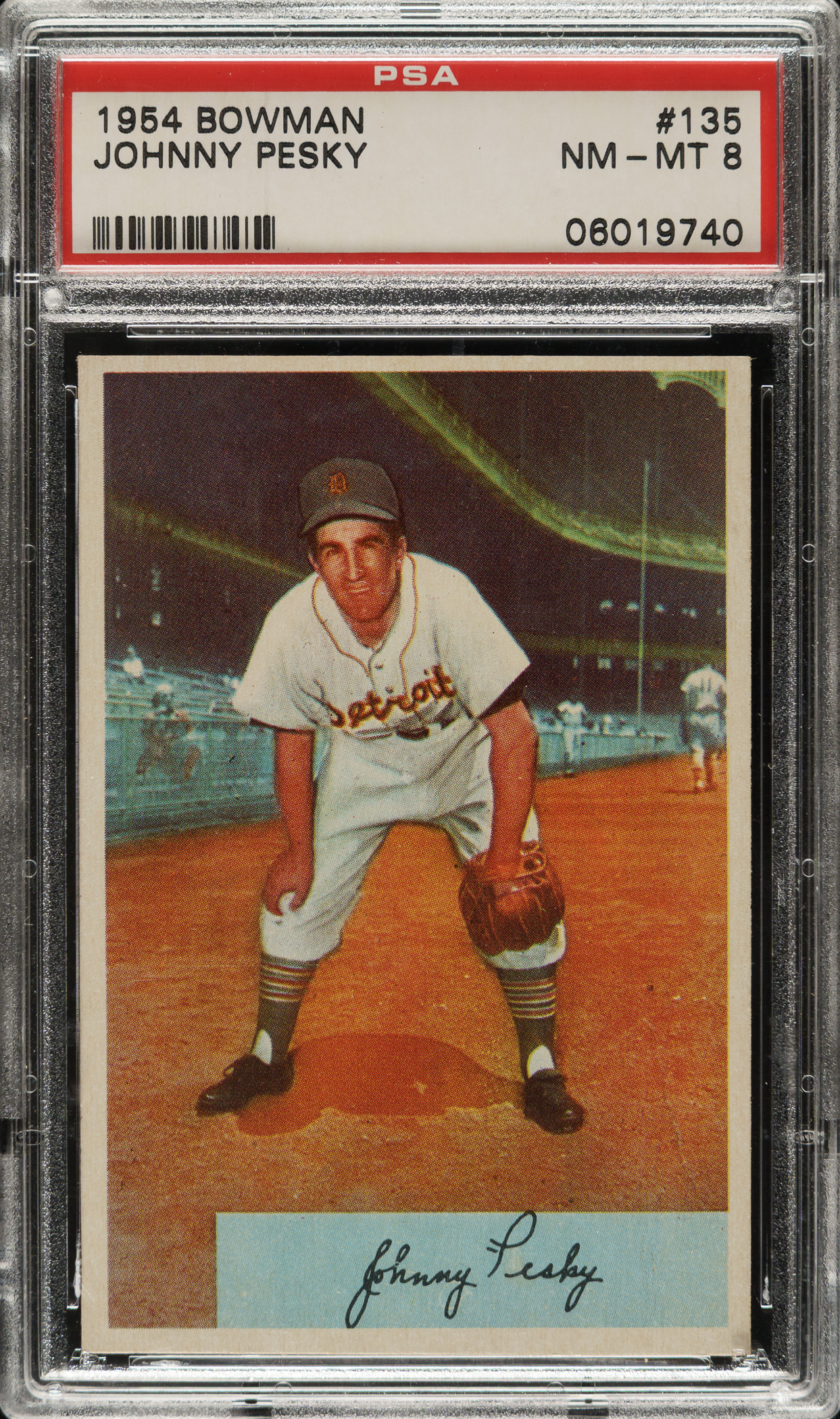 Lot # 1557: 1954 Bowman #135 Johnny Pesky PSA NM-MT 8