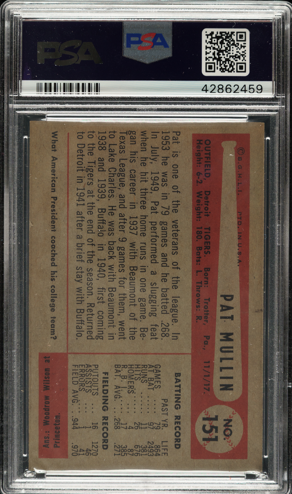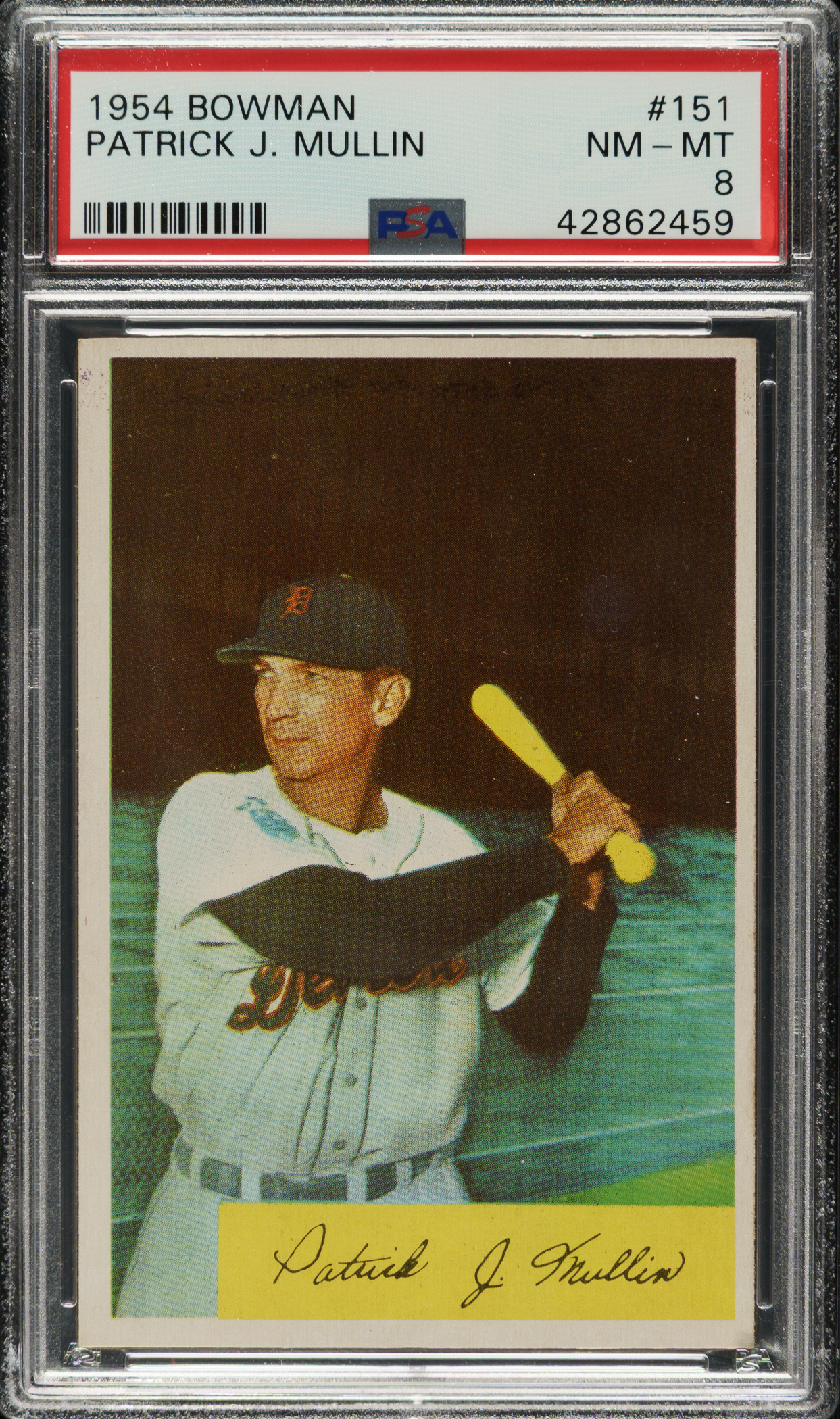 Lot # 1558: 1954 Bowman #151 Pat Mullin PSA NM-MT 8