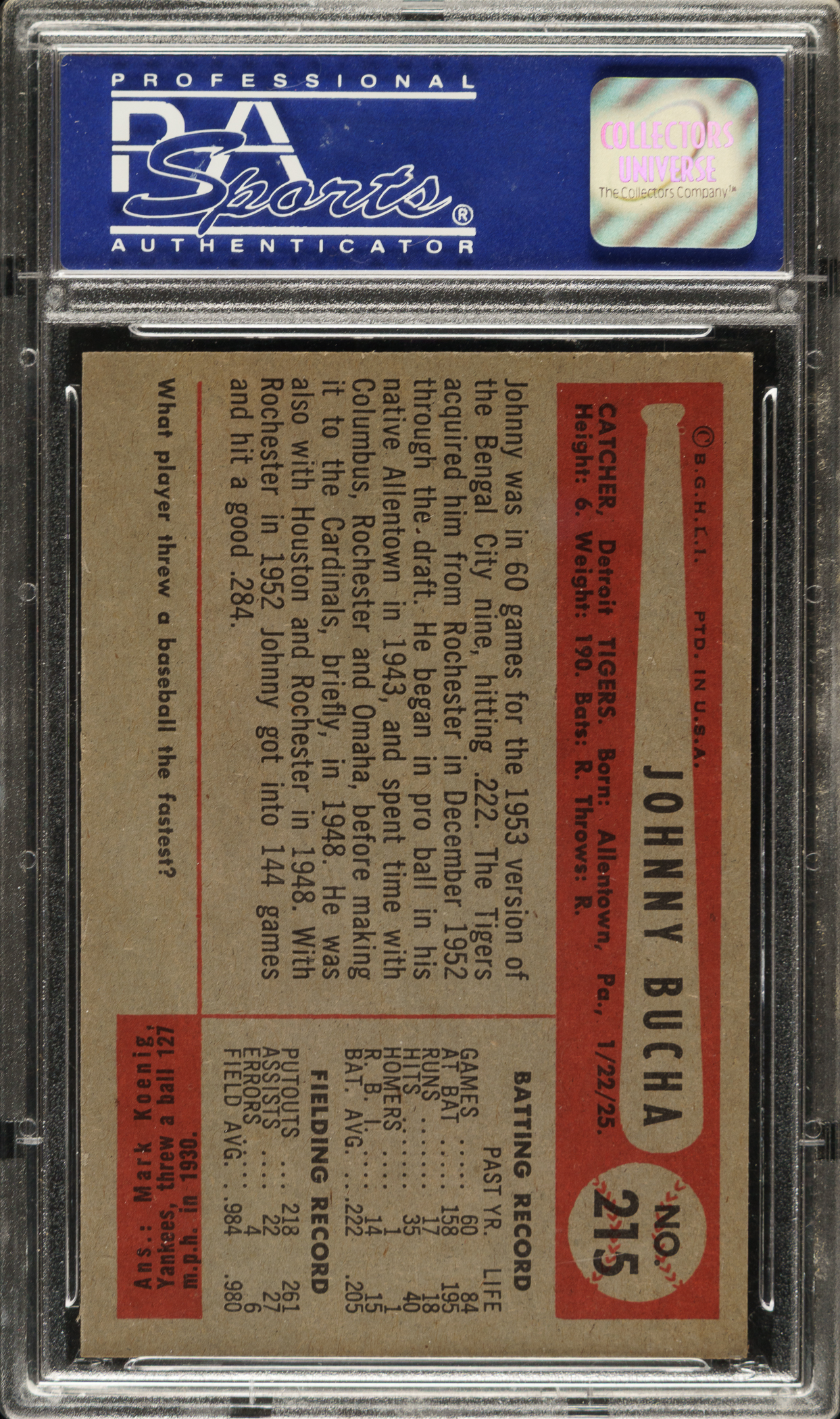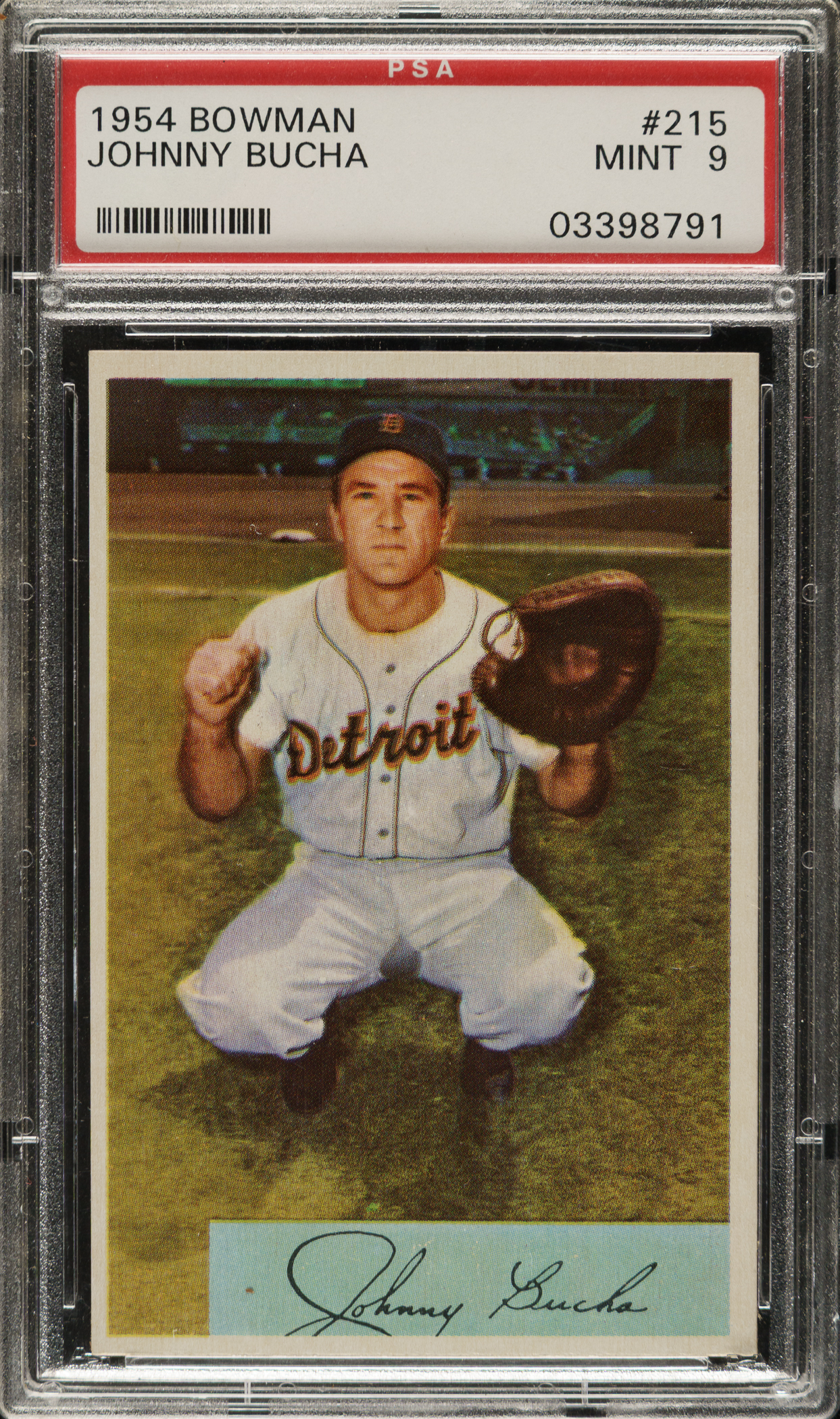 Lot # 1564: 1954 Bowman #215 Johnny Bucha PSA MINT 9