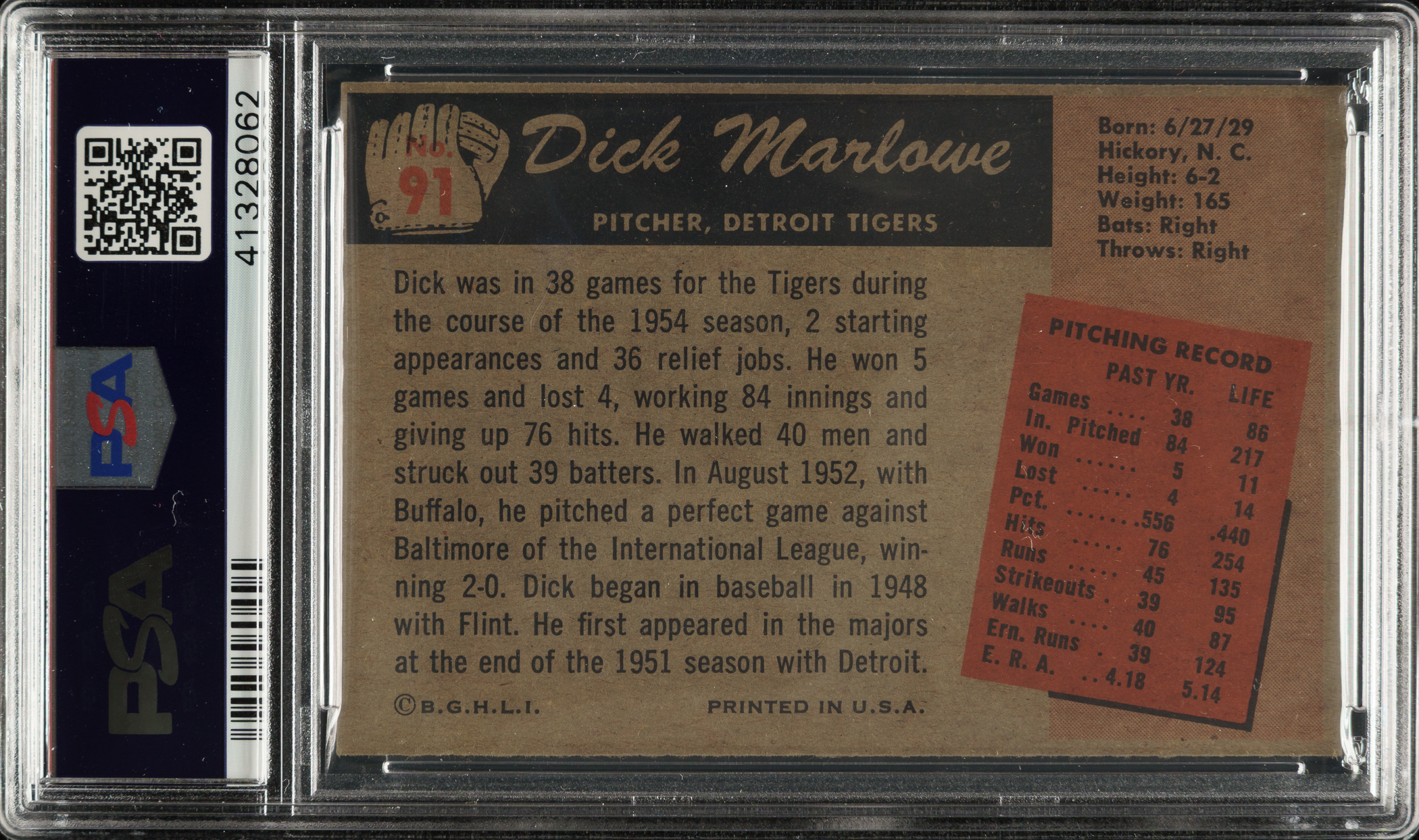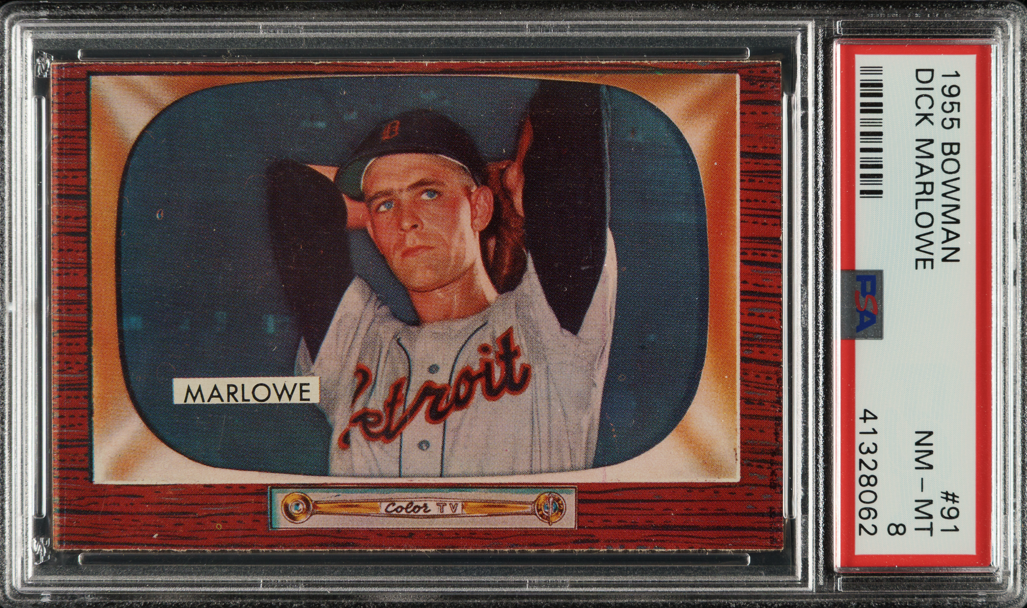 Lot # 1617: 1955 Bowman #91 Dick Marlowe PSA NM-MT 8