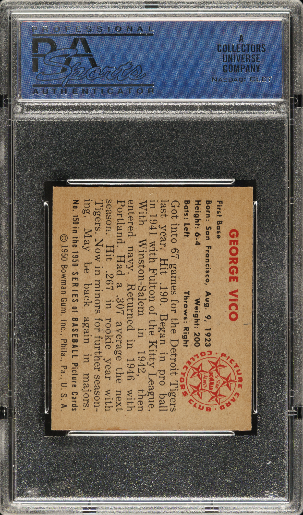 Graded MINT 9 by PSA. Detroit Tigers.