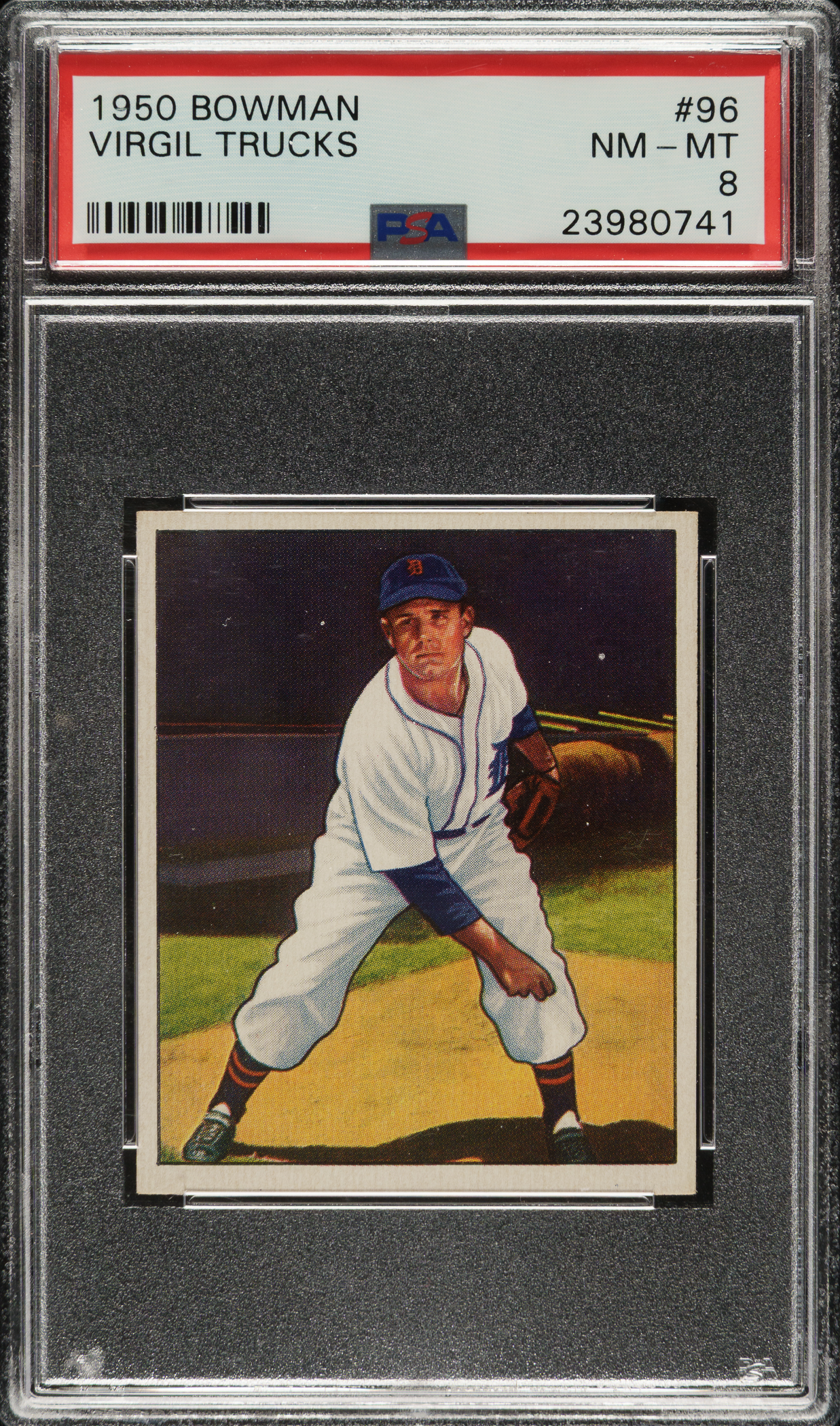 Lot # 1355: 1950 Bowman #96 Virgil Trucks PSA NM-MT 8