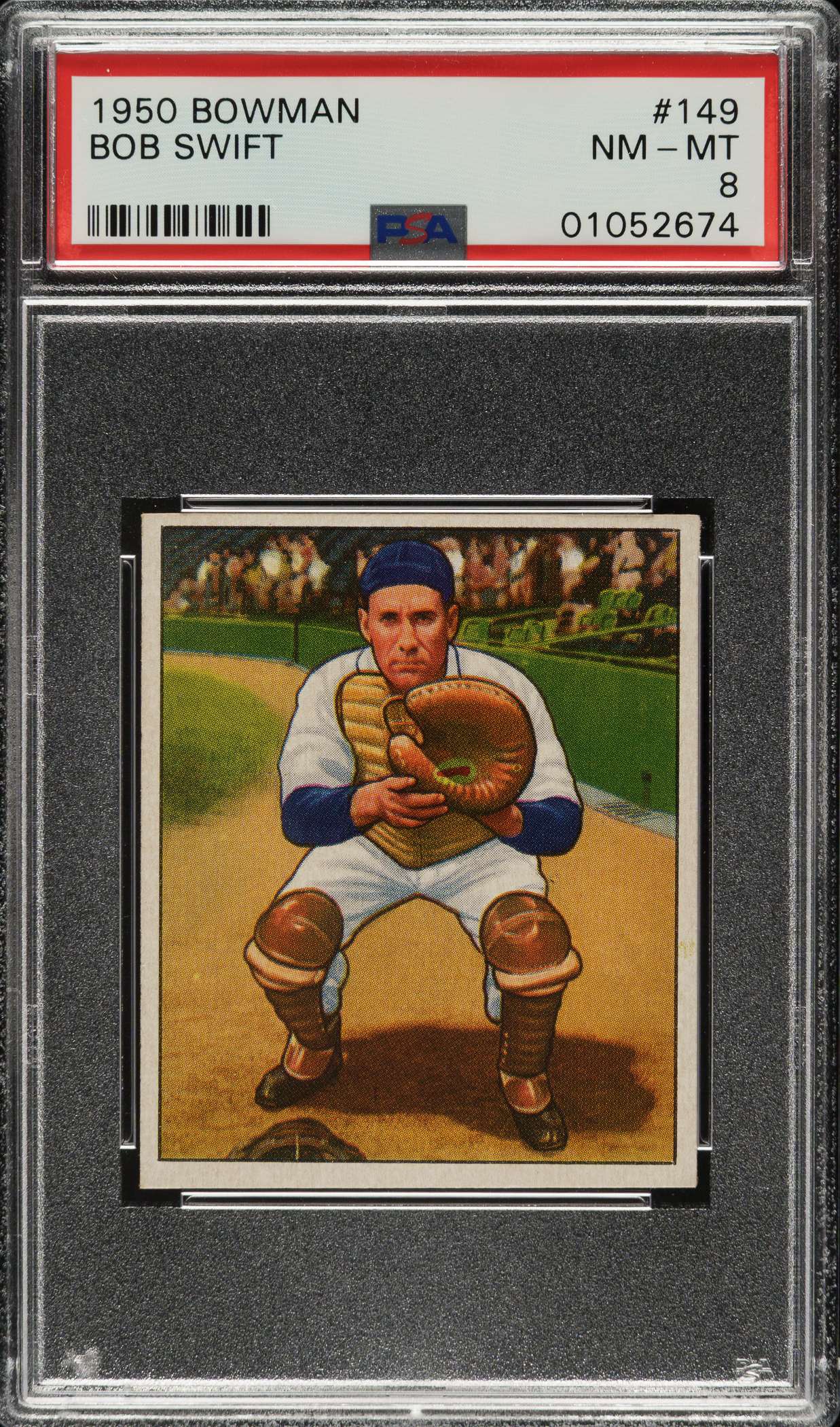 Lot # 1333: 1950 Bowman #149 Bob Swift PSA NM-MT 8