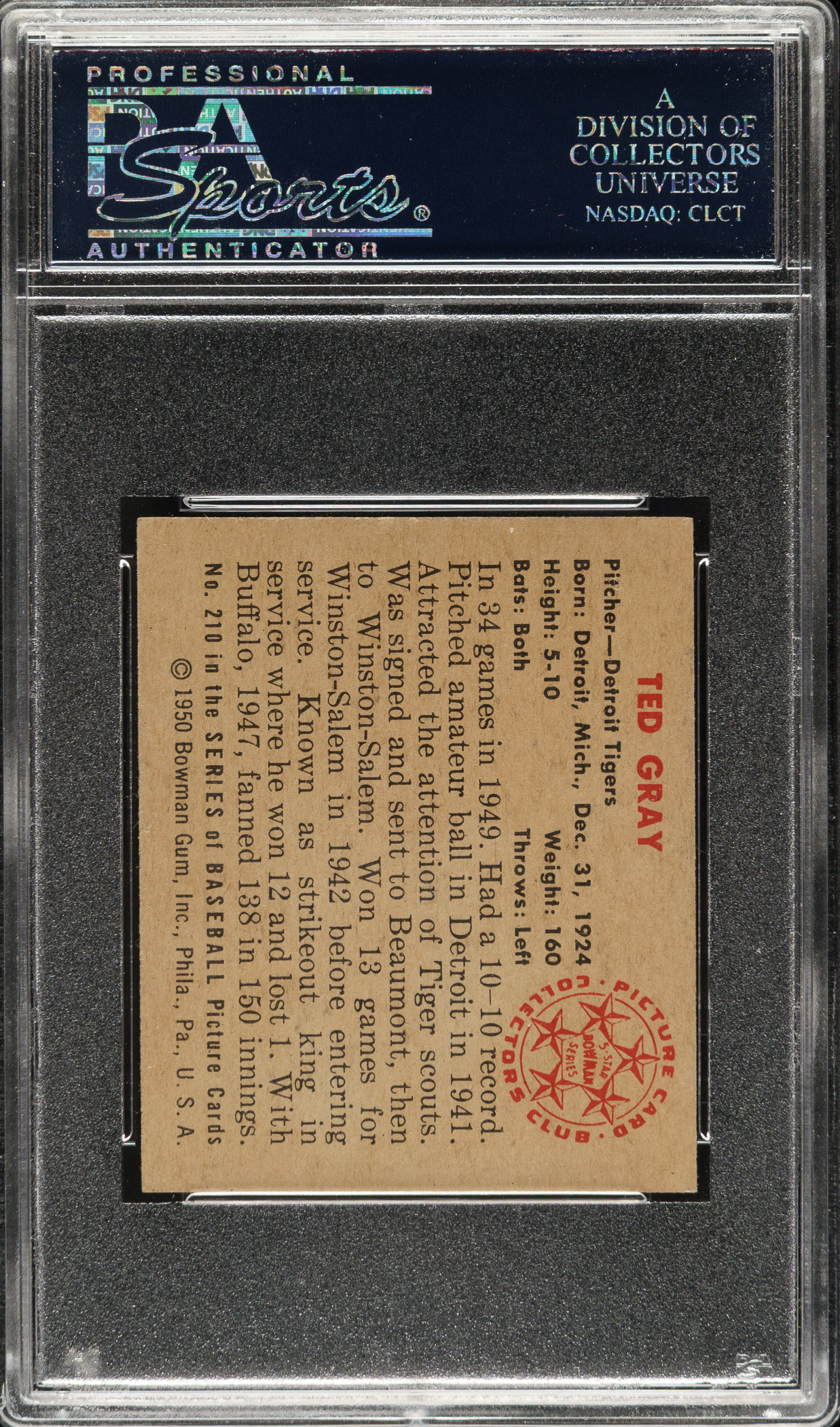 Lot # 1337: 1950 Bowman #210 Ted Gray PSA NM-MT 8