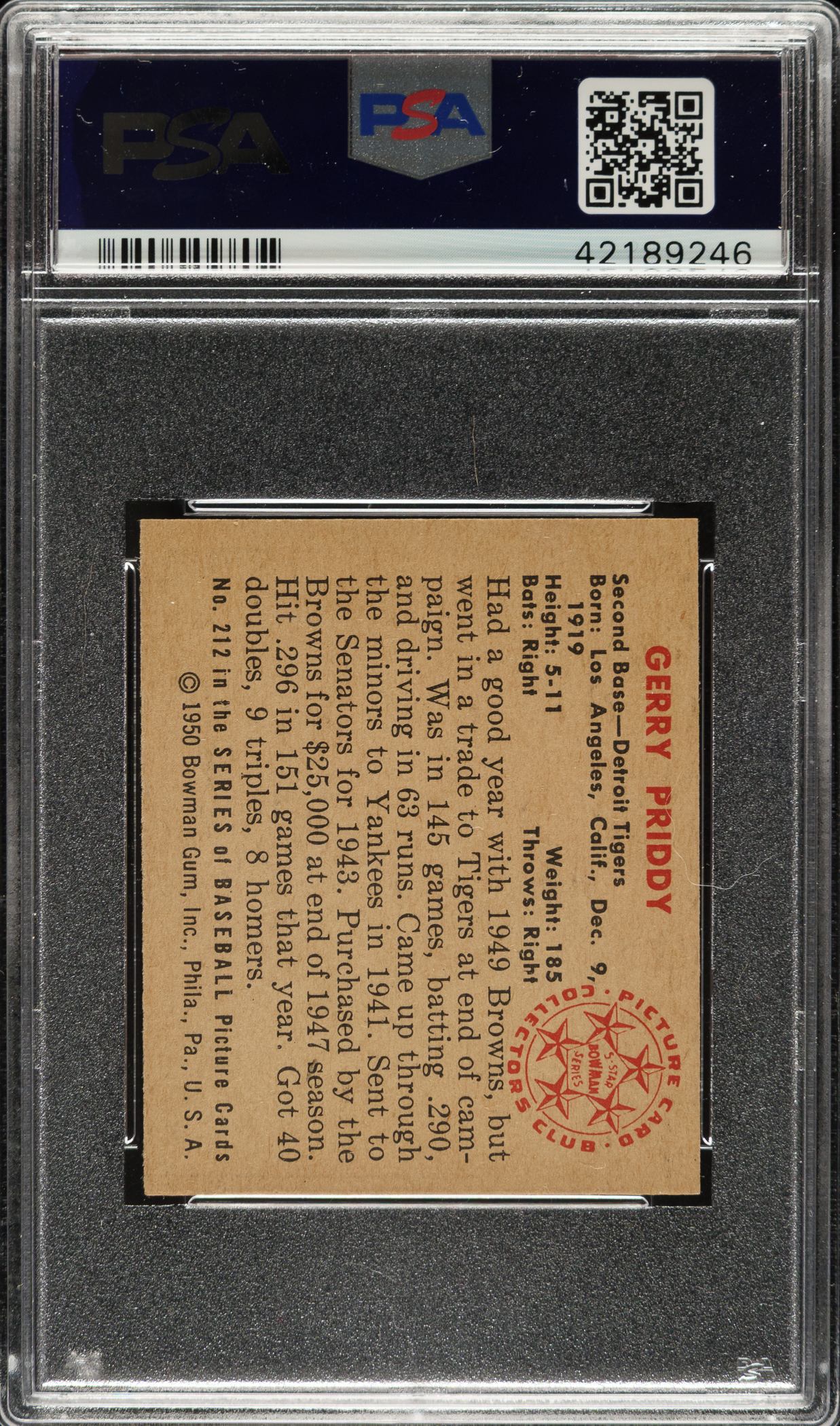 Lot # 1338: 1950 Bowman #212 Gerry Priddy PSA NM-MT 8