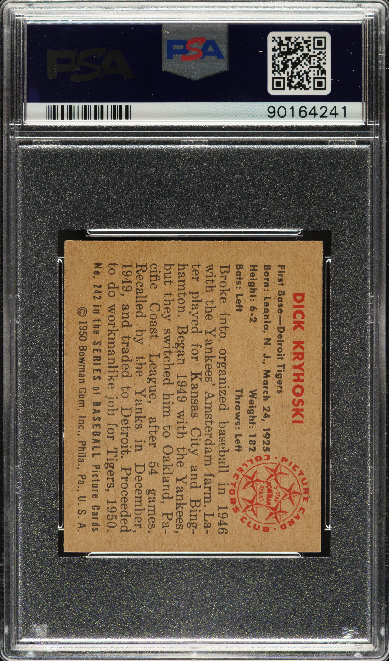 Lot # 1346: 1950 Bowman #242 Dick Kryhoski PSA NM-MT 8