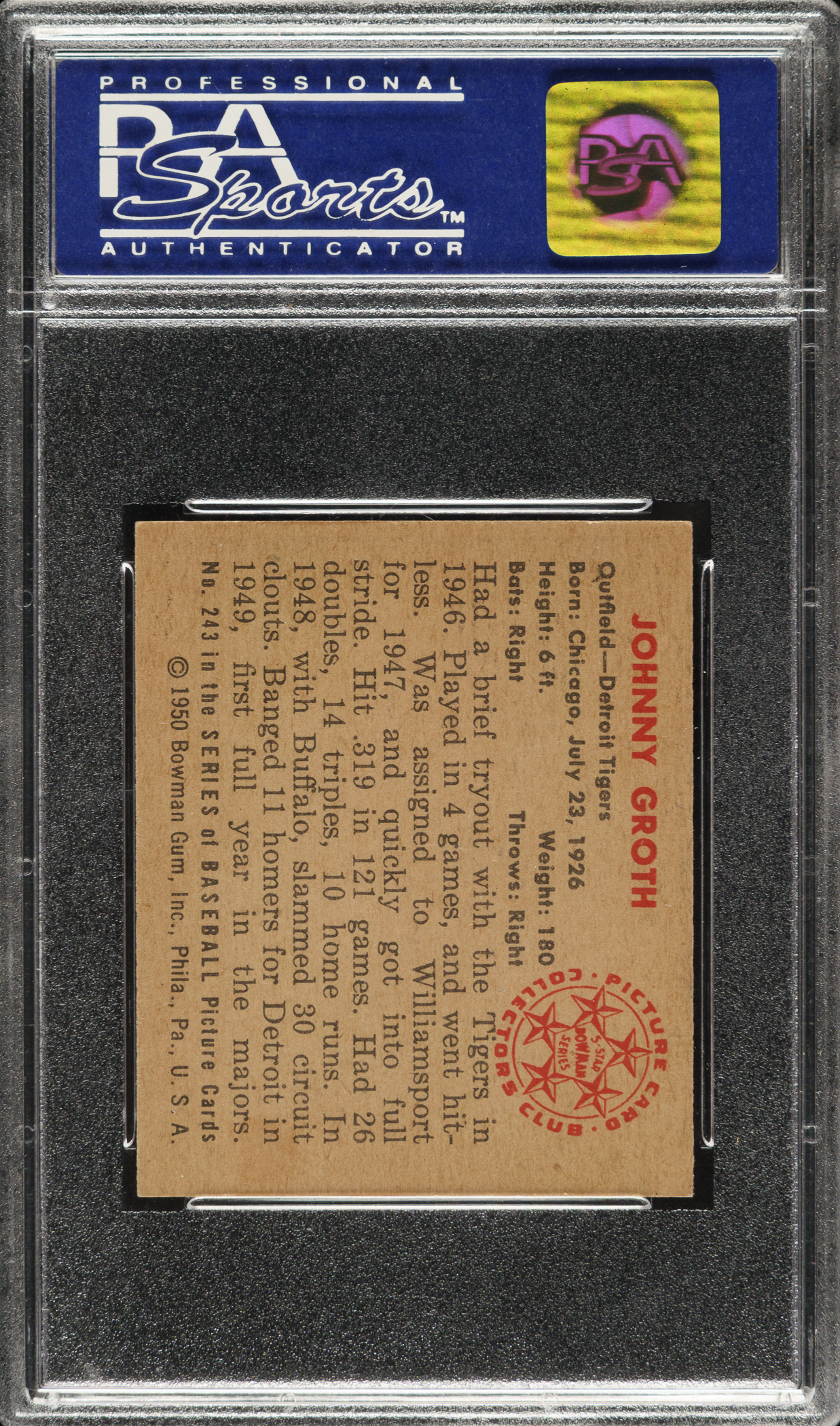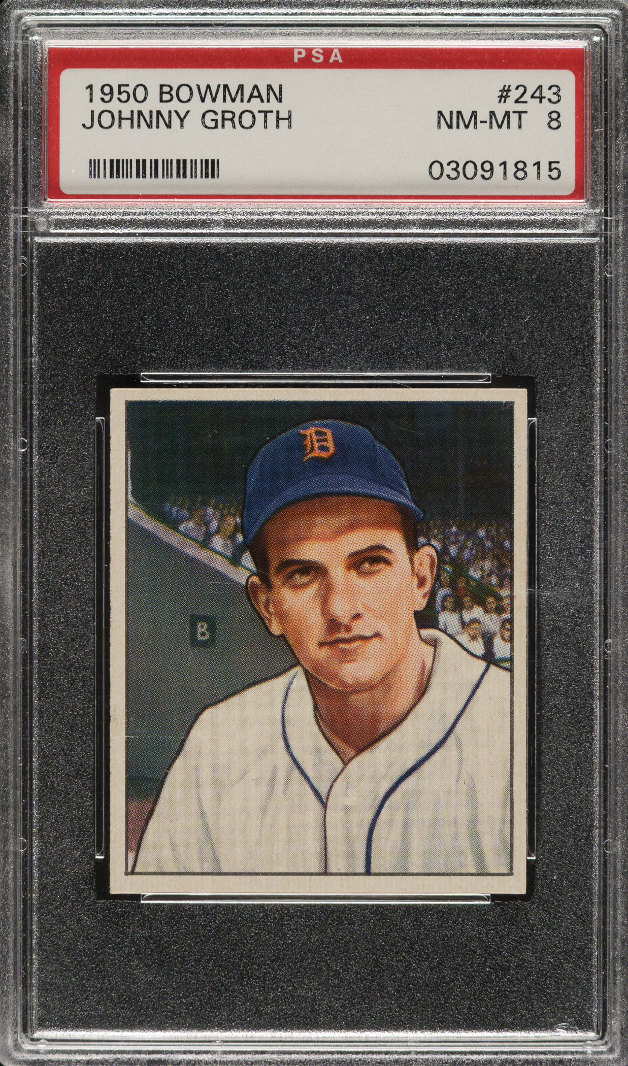 Lot # 1348: 1950 Bowman #243 Johnny Groth PSA NM-MT 8