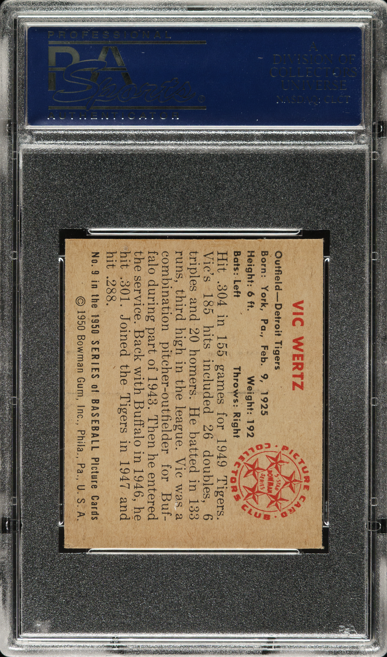 Lot # 1353: 1950 Bowman #9 Vic Wertz PSA NM 7