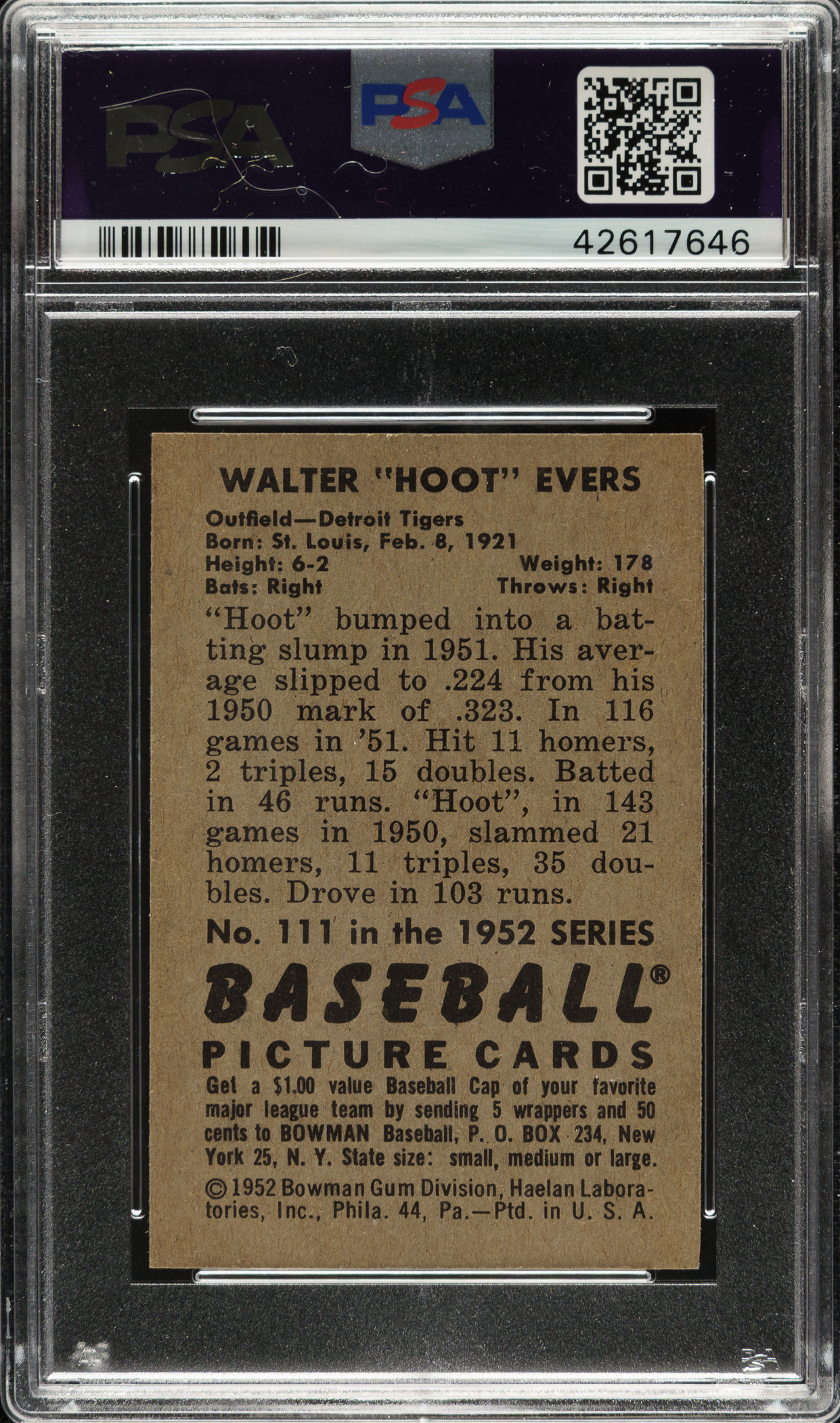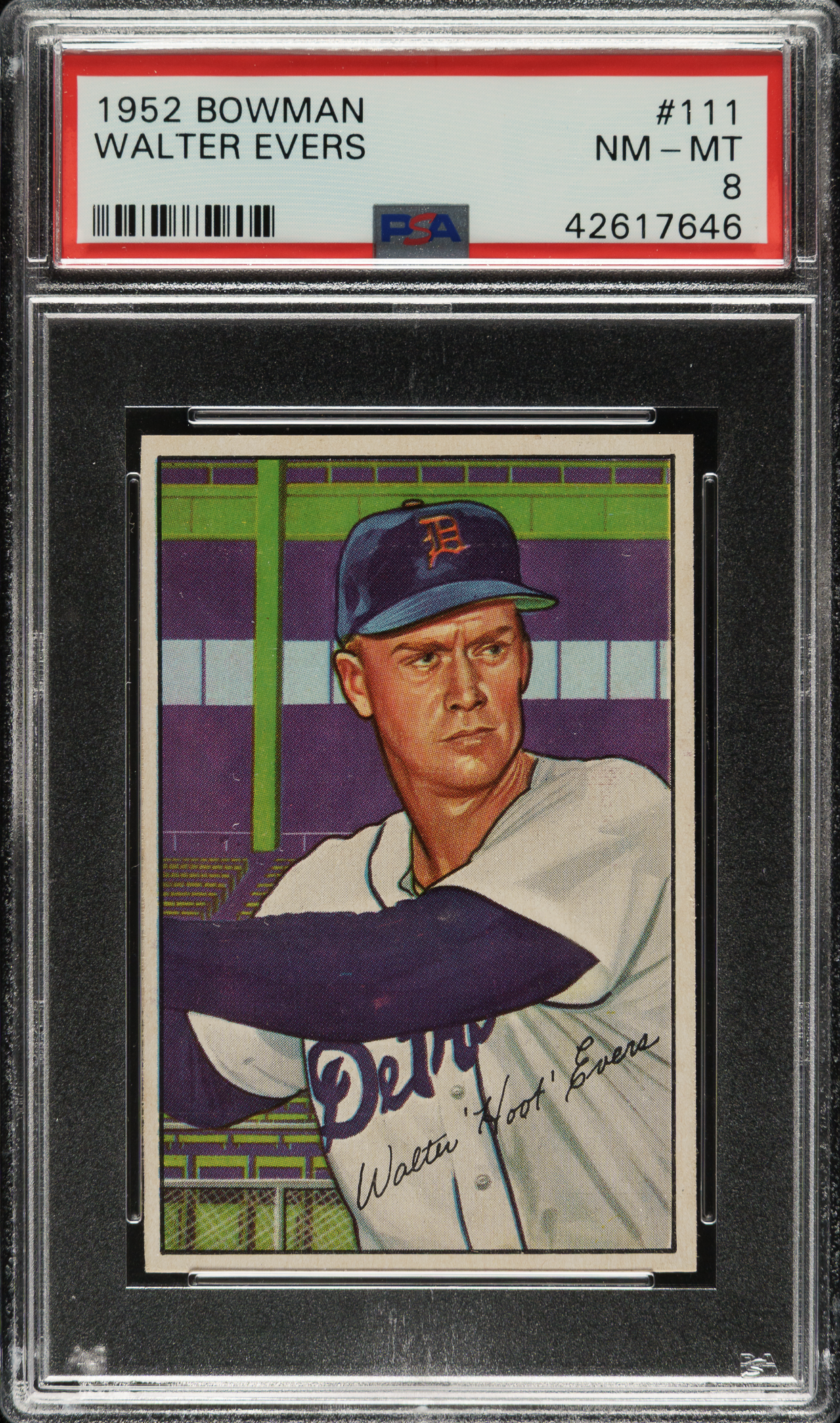 Lot # 1411: 1952 Bowman #111 Walter Evers PSA NM-MT 8