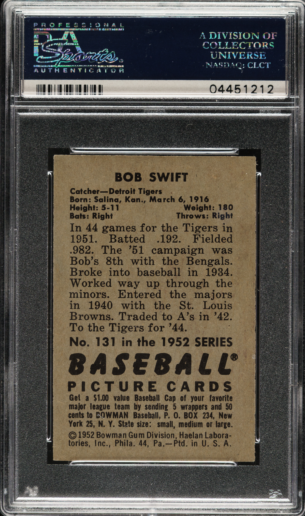 Lot # 1414: 1952 Bowman #131 Bob Swift PSA NM-MT 8
