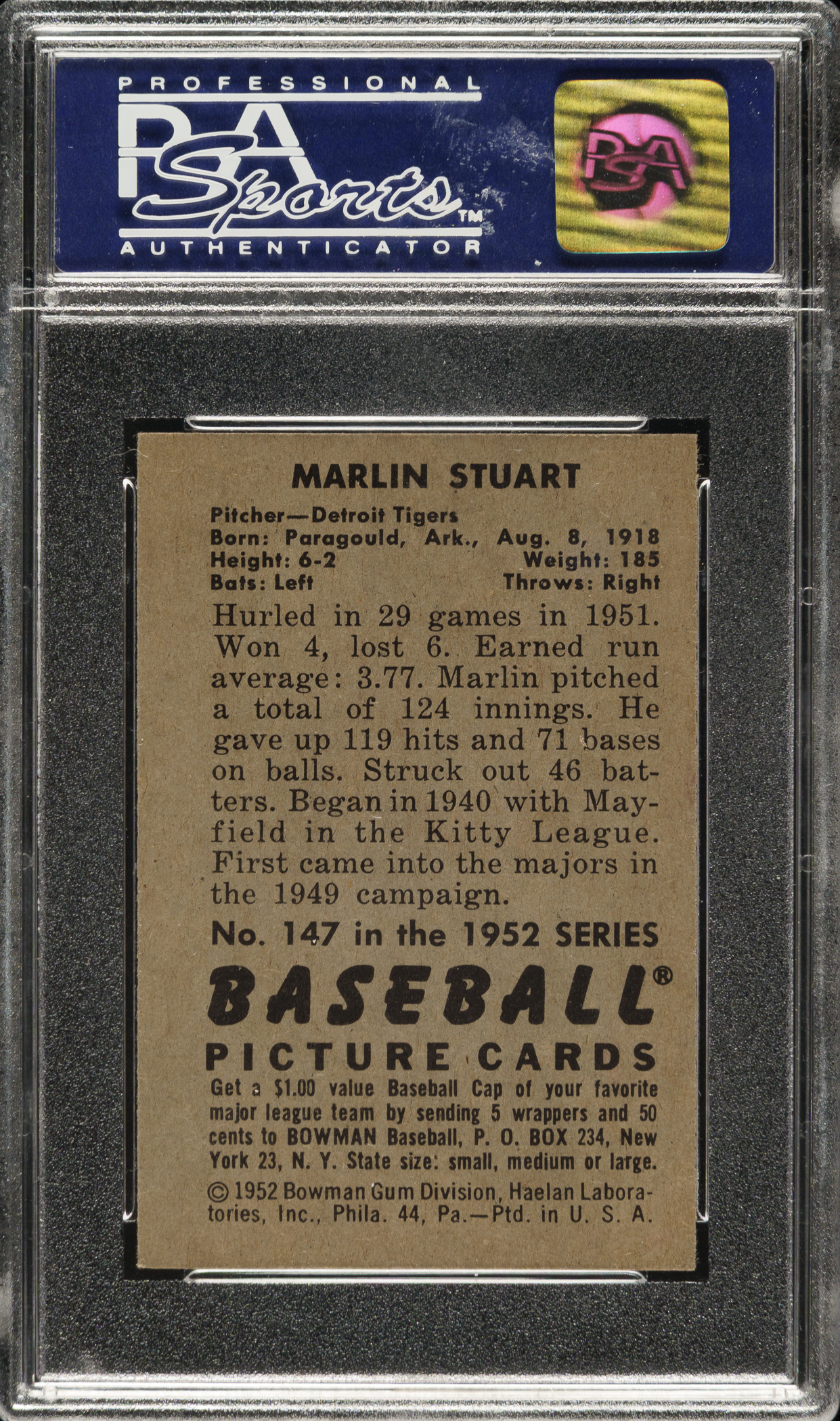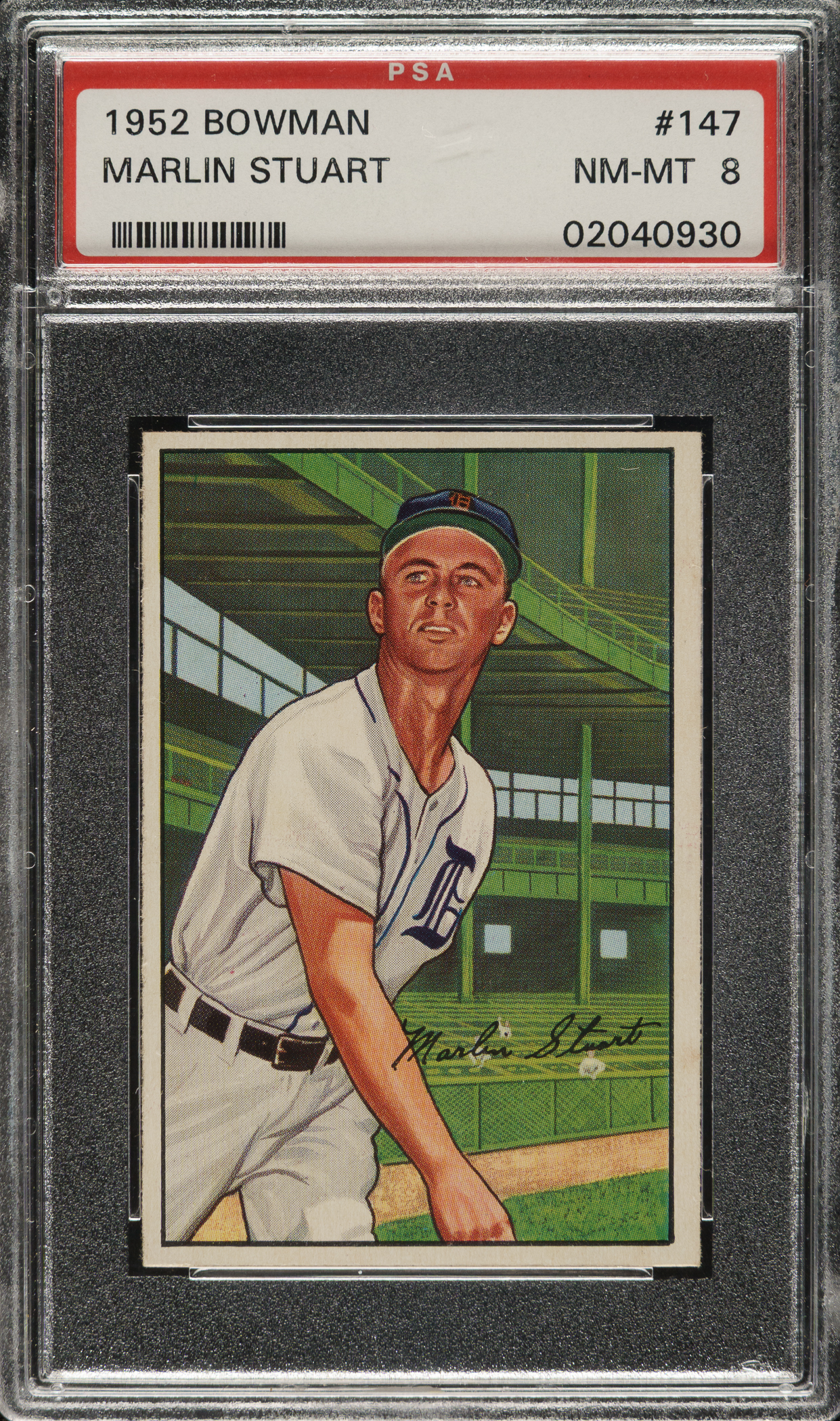 Lot # 1416: 1952 Bowman #147 Marlin Stuart PSA NM-MT 8