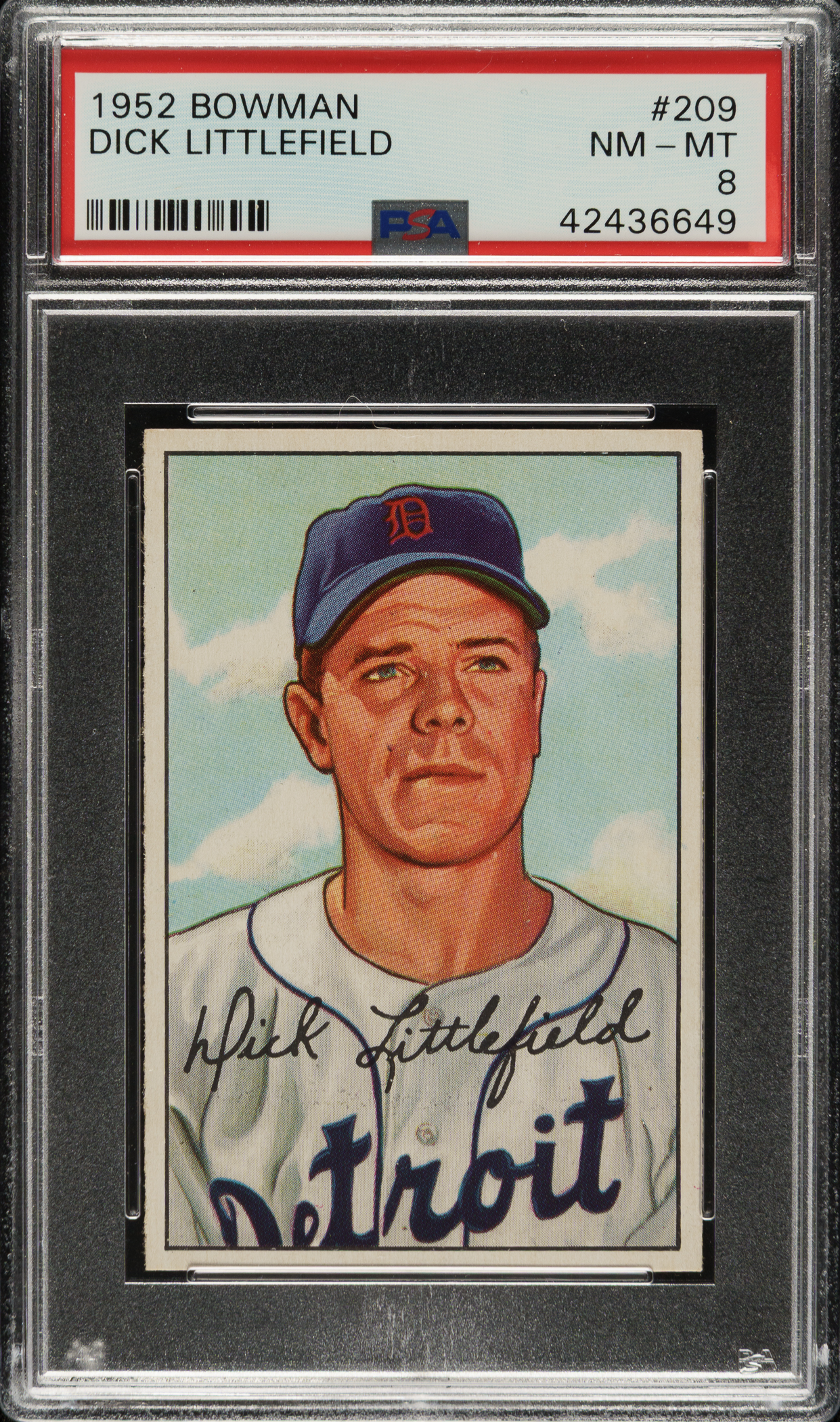 Lot # 1421: 1952 Bowman #209 Dick Littlefield PSA NM-MT 8