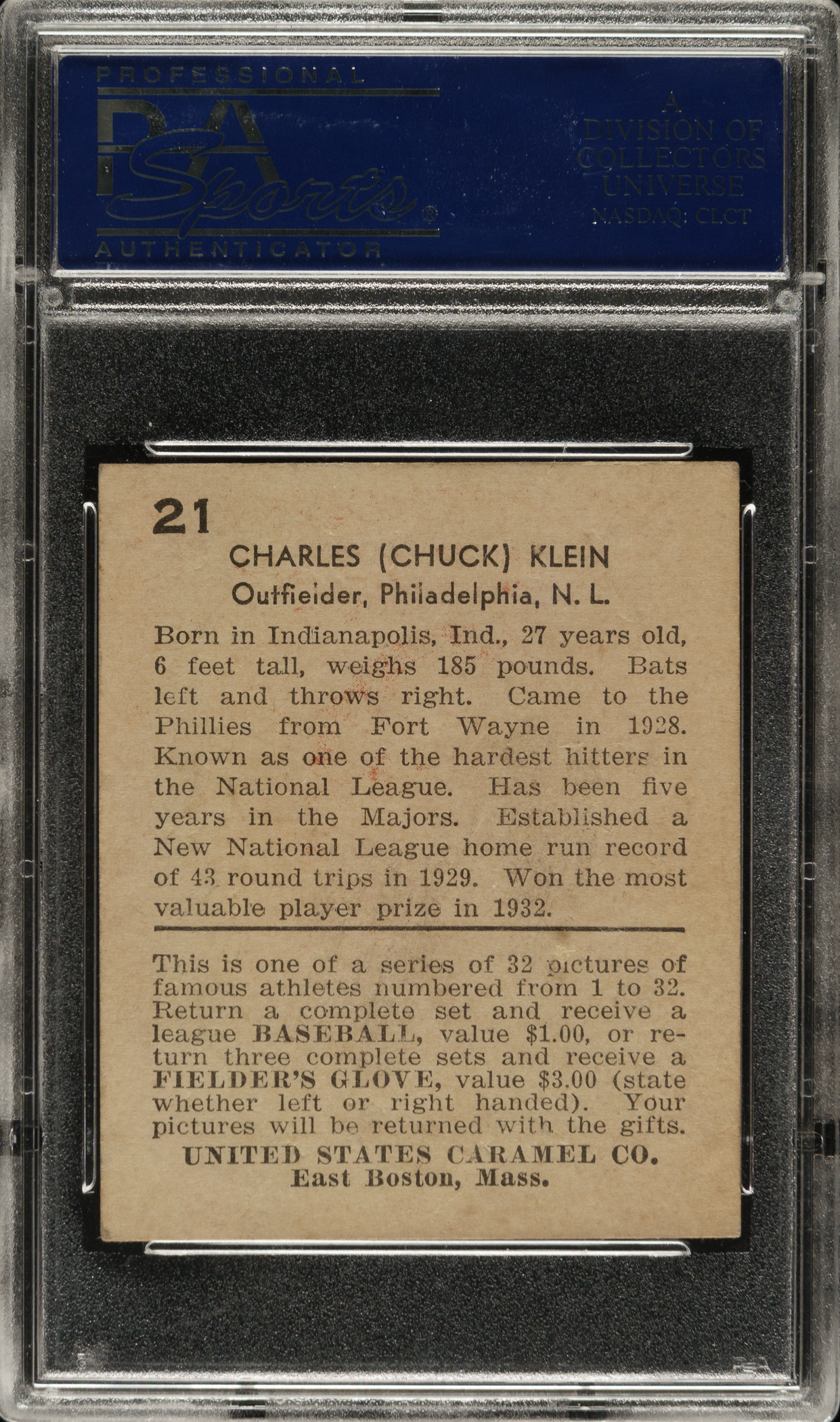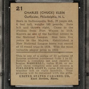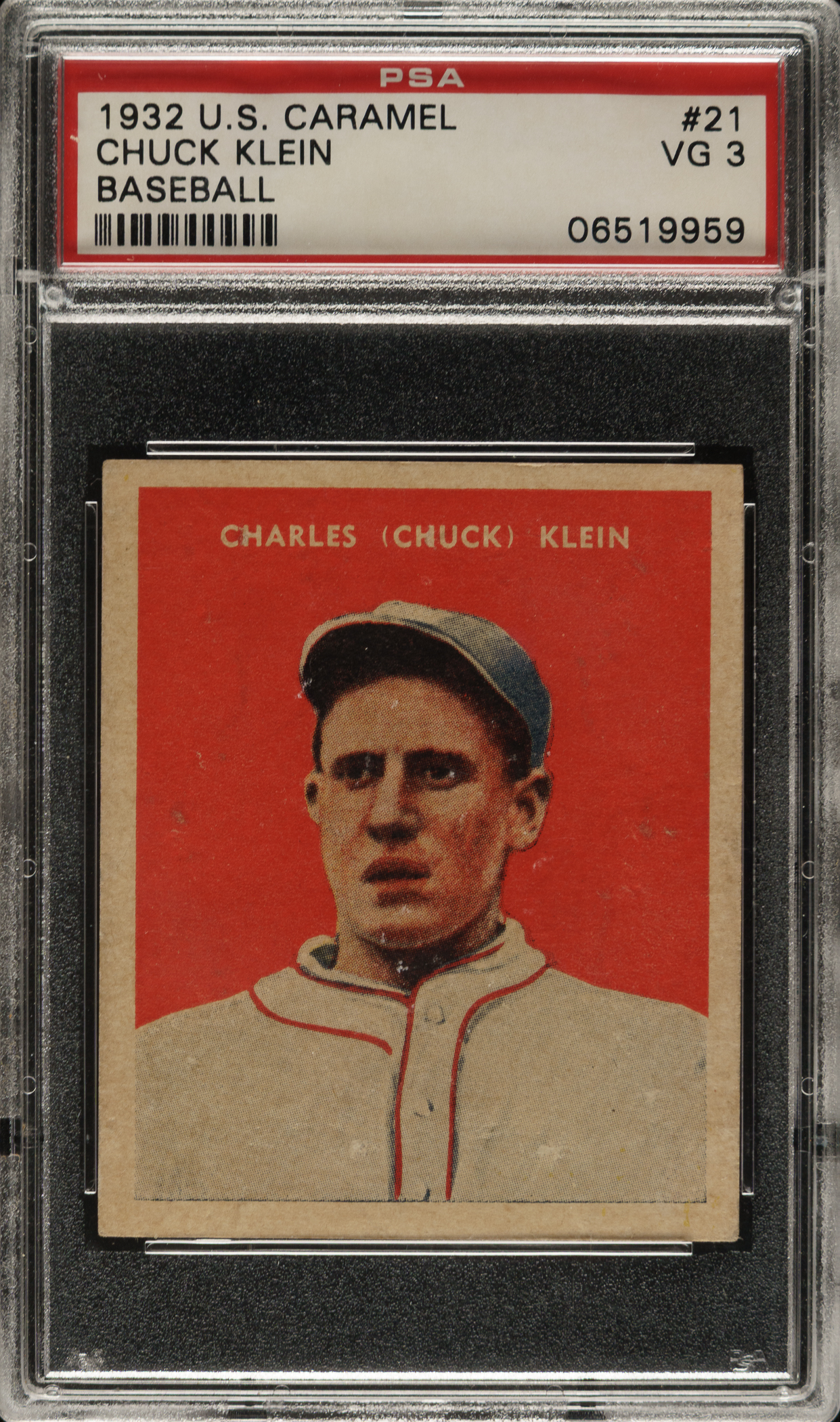 Graded VG 3 by PSA. Philadelphia Phillies Hall of Famer Chuck Klein.