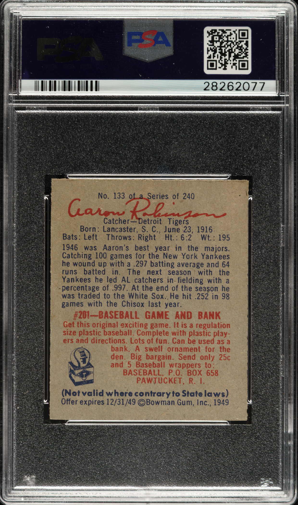 Lot # 1081: 1949 Bowman #133 Aaron Robinson PSA MINT 9