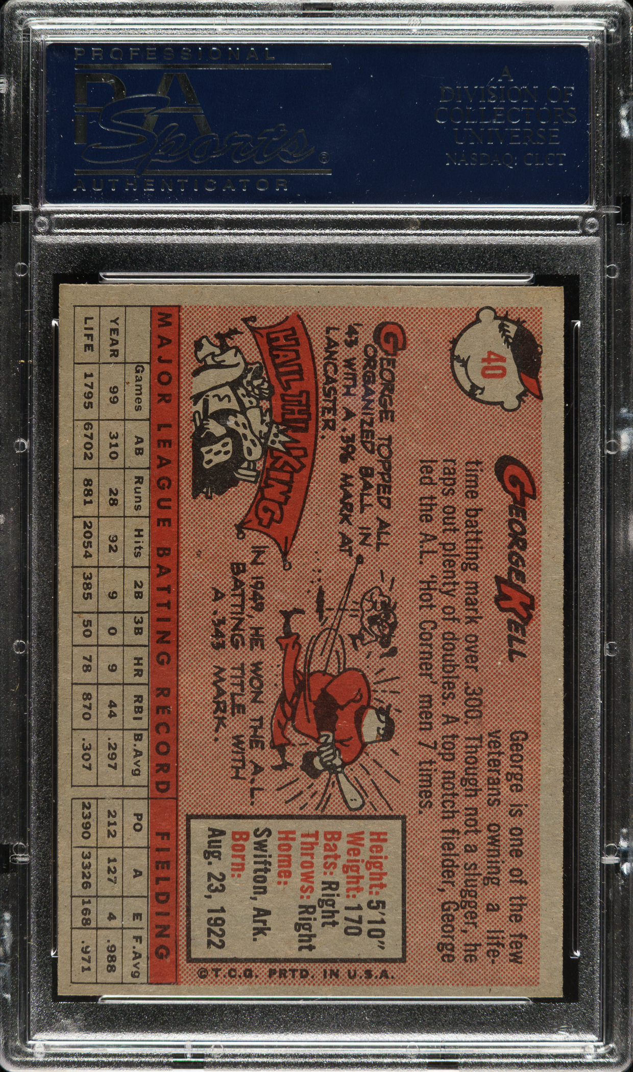 Graded MINT 9 by PSA. Baltimore Orioles Hall of Famer George Kell. One of 12 examples graded at this level by PSA with none higher!