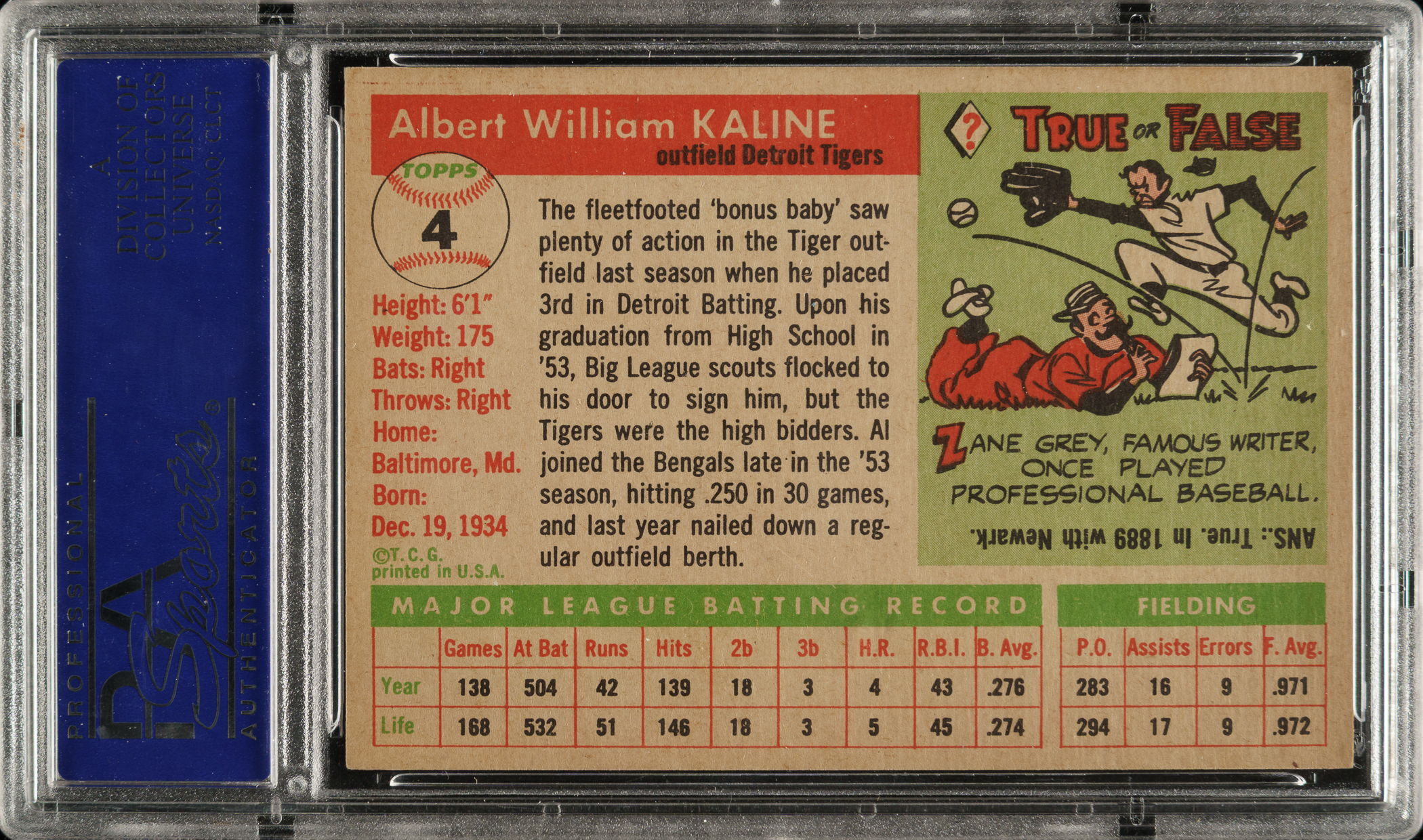 Graded NM-MT 8 by PSA. Detroit Tigers Hall of Famer Al Kaline.