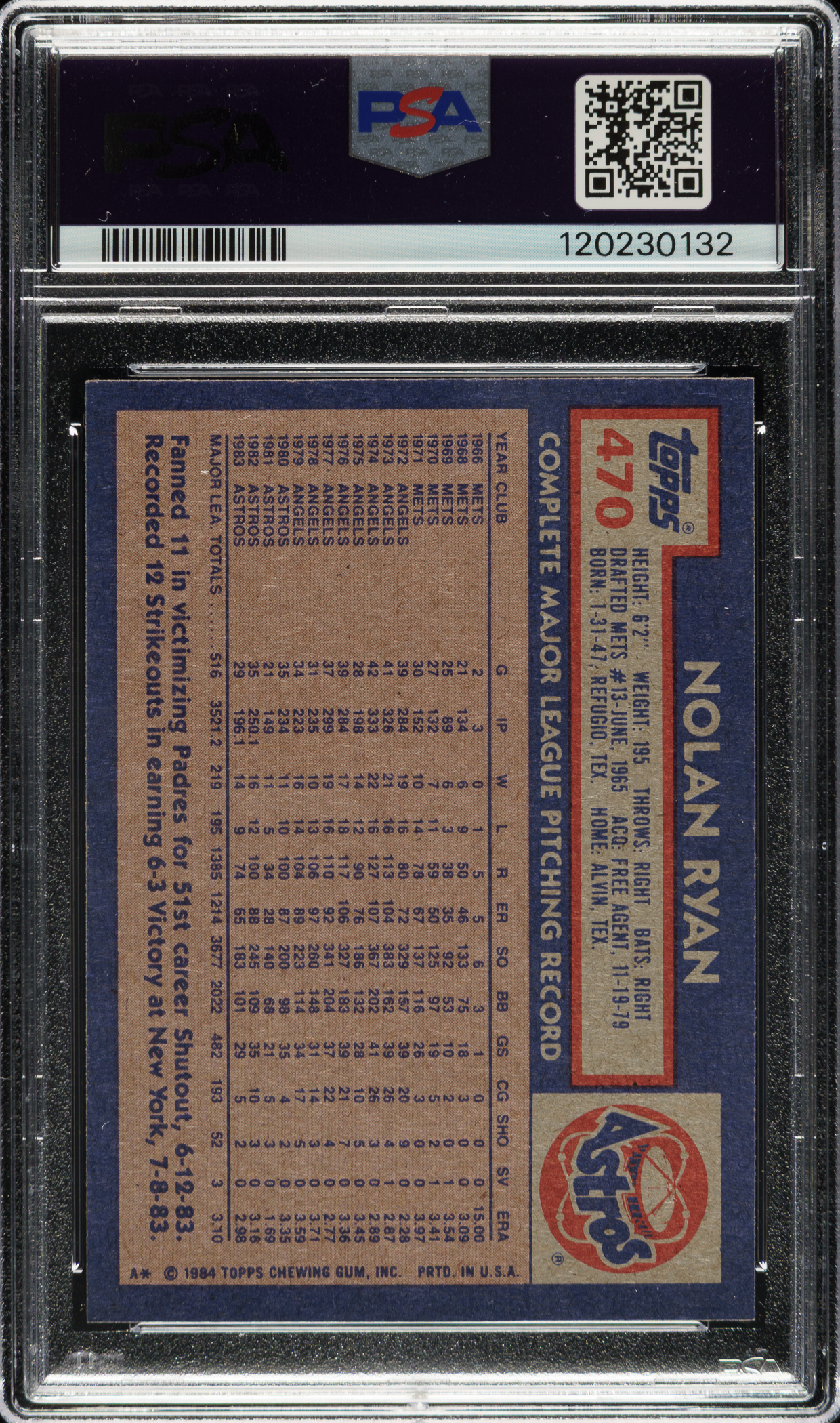 Graded GEM MINT 10 by PSA. Houston Astros Hall of Famer Nolan Ryan.