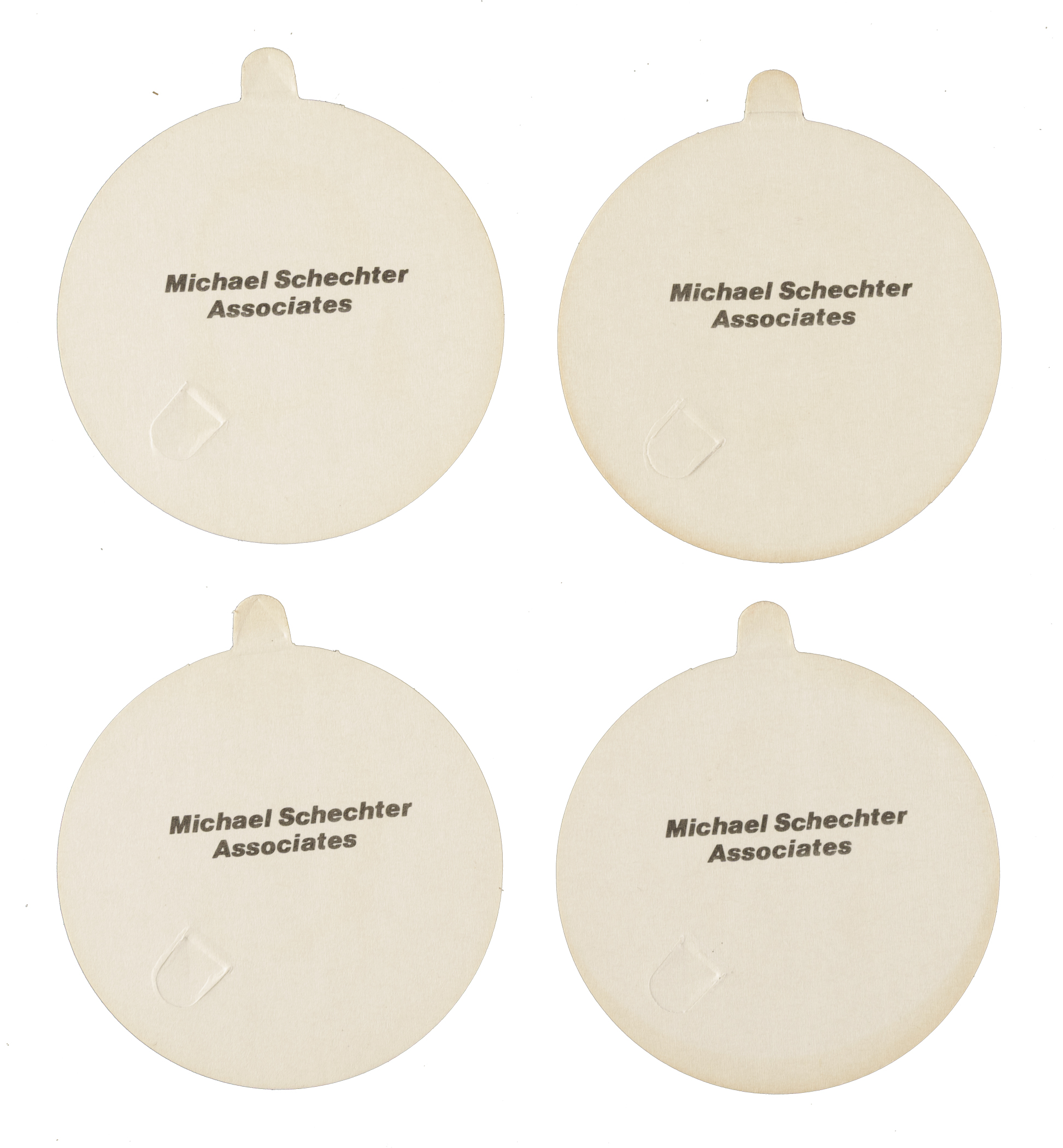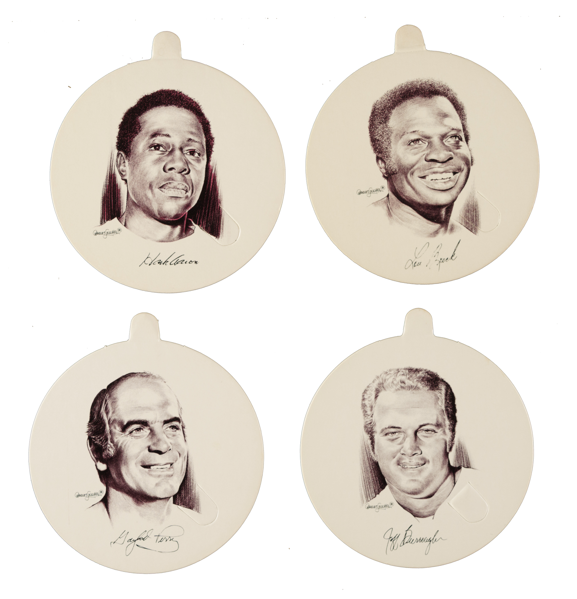 Collection of four 1975 MSA (Michael Schecter Associates) Linnett Portrait lids. This collection consists of the following: Aaron (Ex-Mt), Brock (bent tab, otherwise Nr/Mt-Mt), Perry (Nr/Mt-Mt), and Burroughs (Nr/Mt). Total: 4 lids.