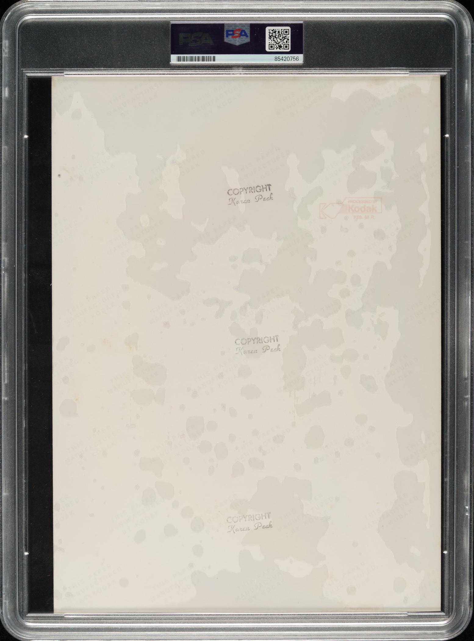 Original photo of Cal Ripken Jr. and Eddie Murray as members of the Baltimore Orioles during the 1986 season, signed and inscribed by the Hall of Famers in blue marker. PSA/DNA has encapsulated the photo, grading the signatures NM-MT 8 and certifying the photograph as a Type I. The photo captures Murray at bat, with Ripken Jr. taking a lead off first base. Three credit stamps of photographer Karen Peck appear on the reverse. The photo (8 x 11 inches) is in Excellent condition overall.