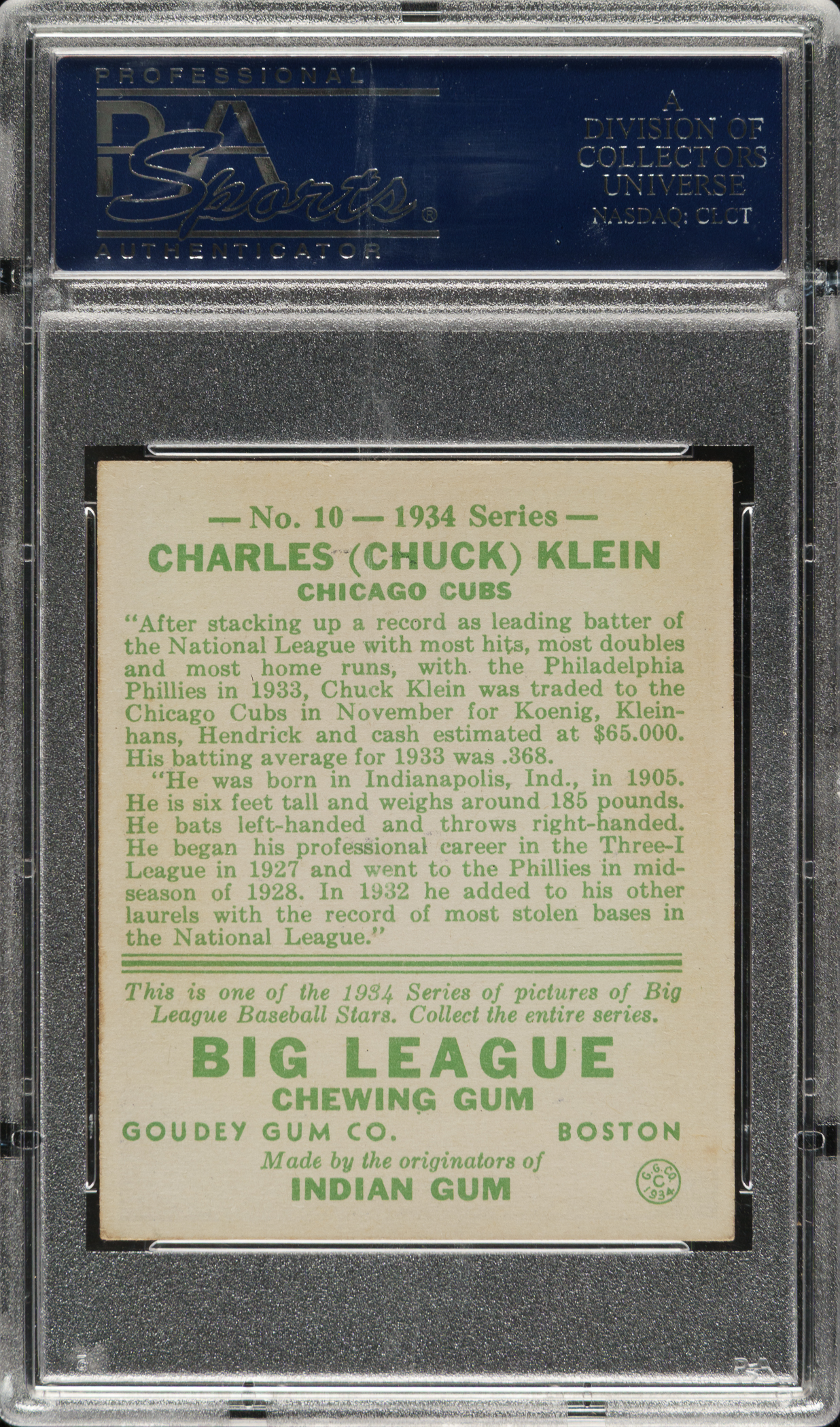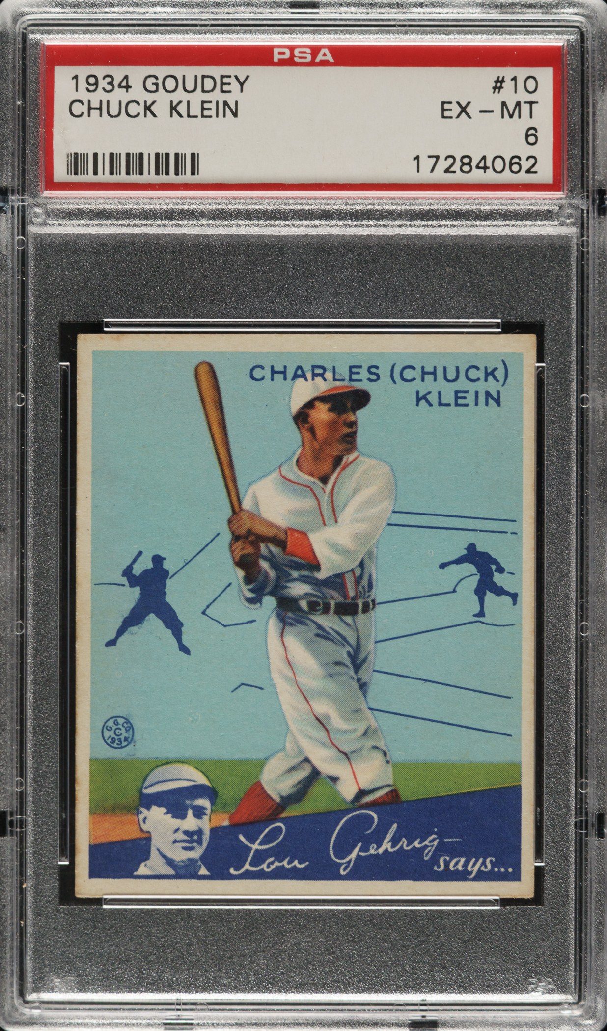 Graded EX-MT 6 by PSA. Chicago Cubs Hall of Famer Chuck Klein.