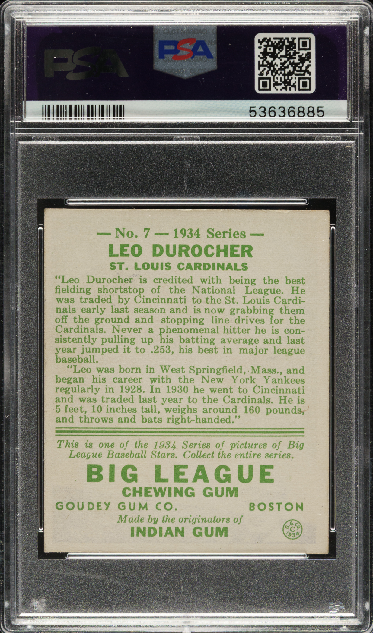 Graded EX-MT 6 by PSA. St. Louis Cardinals Hall of Famer Leo Durocher.