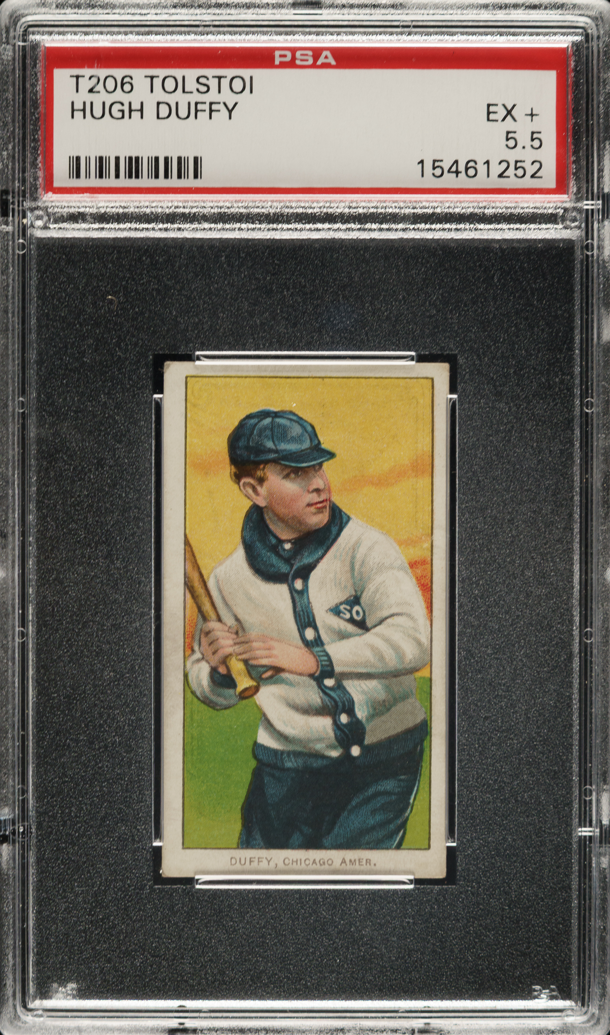 Graded EX+ 5.5 by PSA. Chicago White Sox Hall of Famer Hugh Duffy. One of only two examples of this front/back combination graded at this level by PSA with just one higher. (Please note it is possible that an equal or higher grade exists among the "Unknown Back" cards listed on the Population Report).