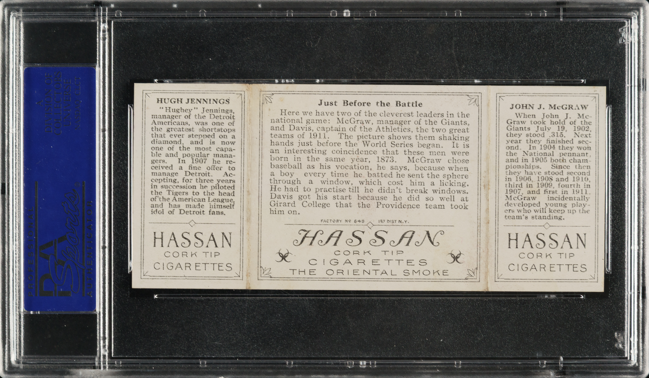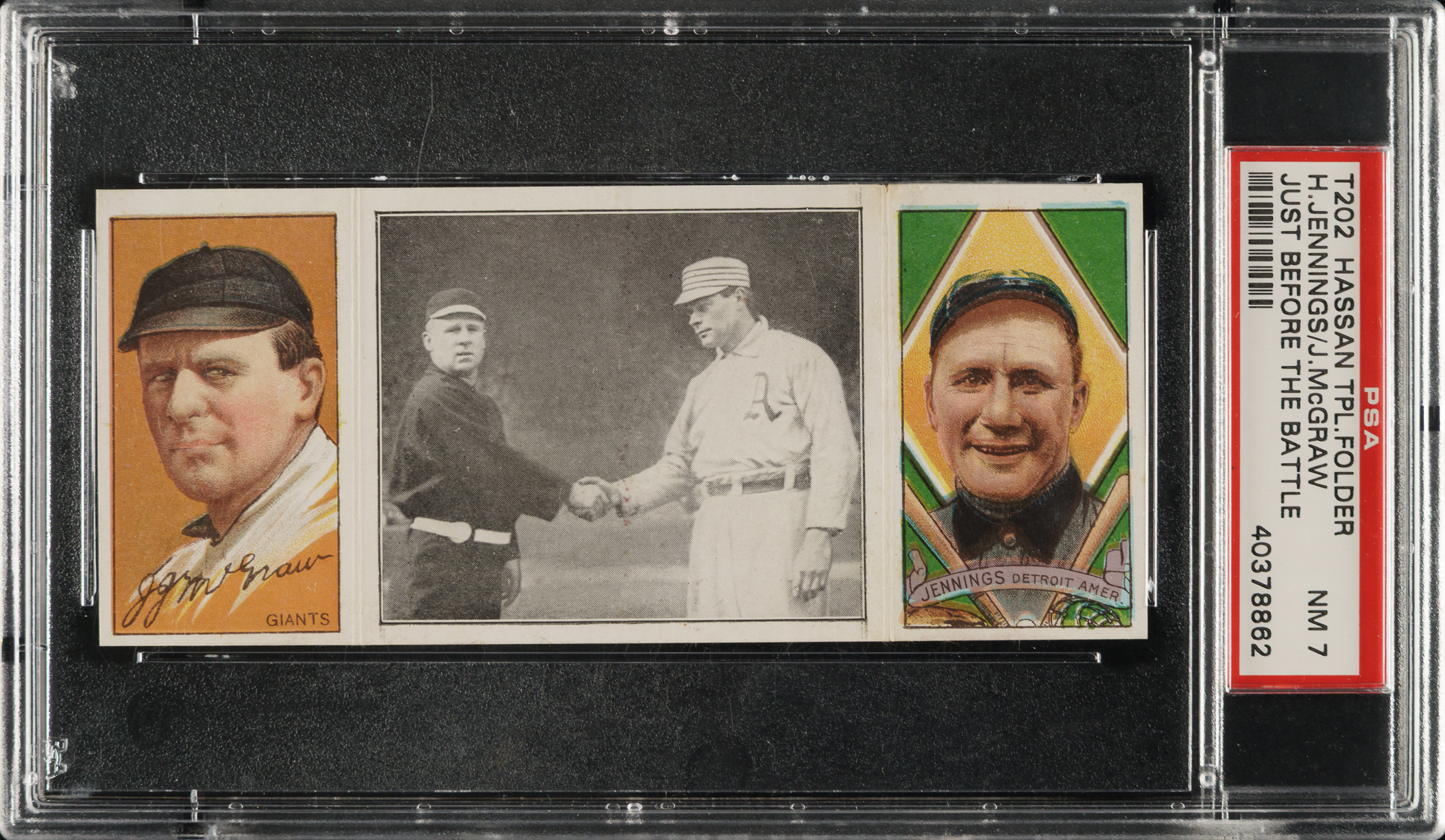 Graded NM 7 by PSA. Hall of Famers John McGraw of the New York Giants and Hughie Jennings of the Detroit Tigers. Only three examples graded higher.