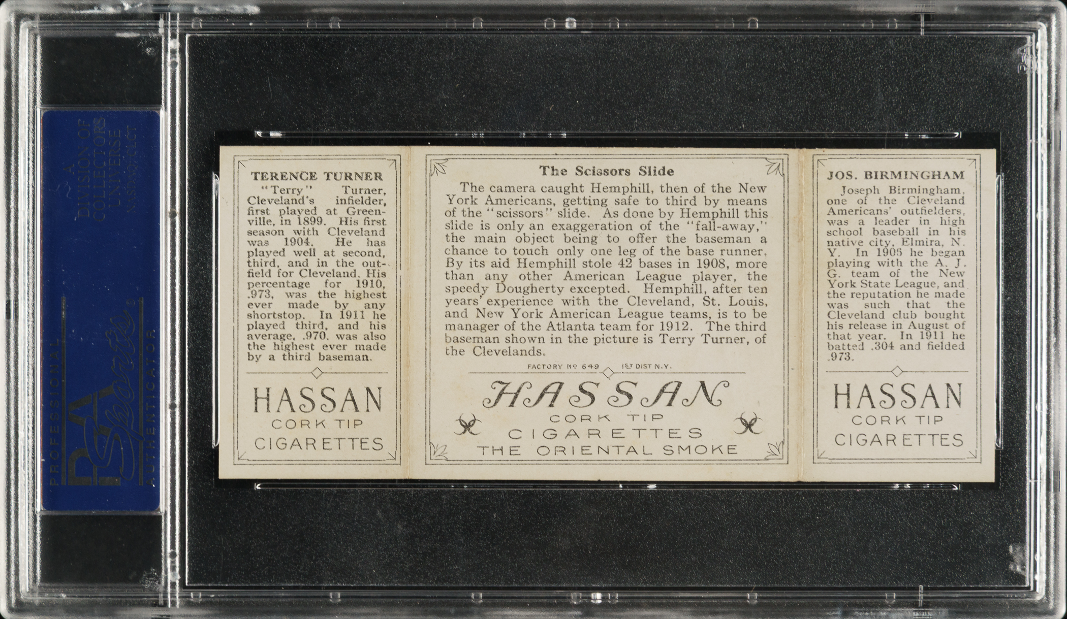 1912 T202 Hassan Triple Folder "Evers Makes a Safe Slide" Johnny Evers/Frank Chance SGC VG 40