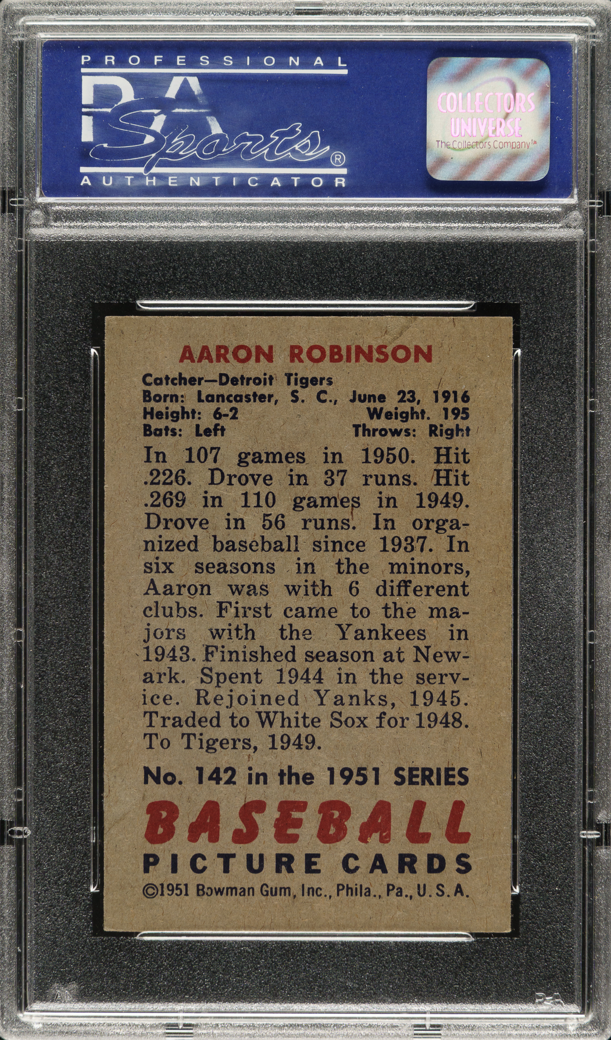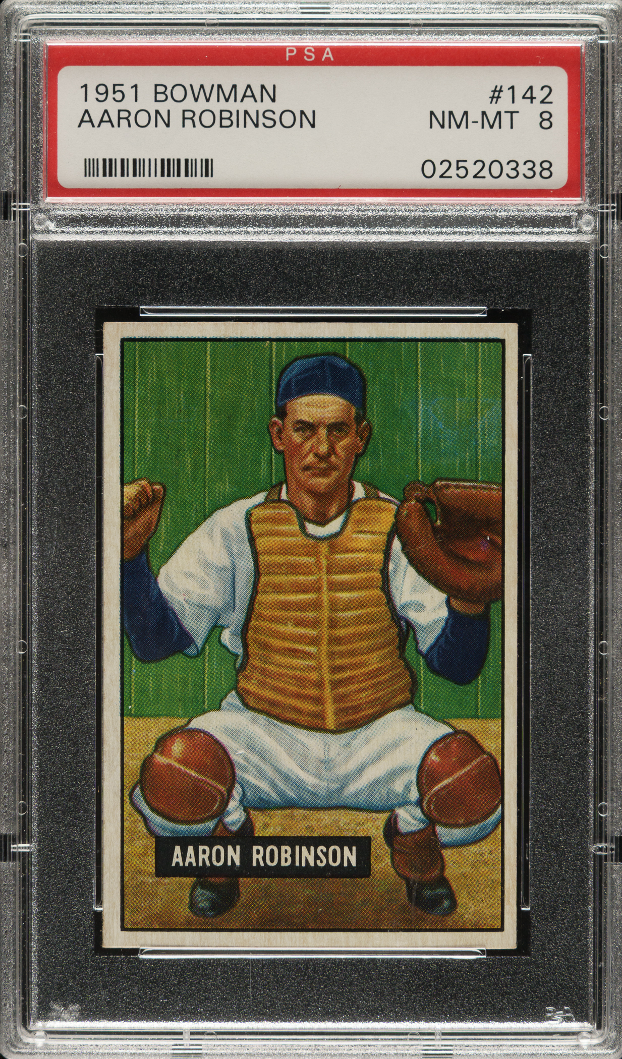 Lot # 1371: 1951 Bowman #142 Aaron Robinson PSA NM-MT 8