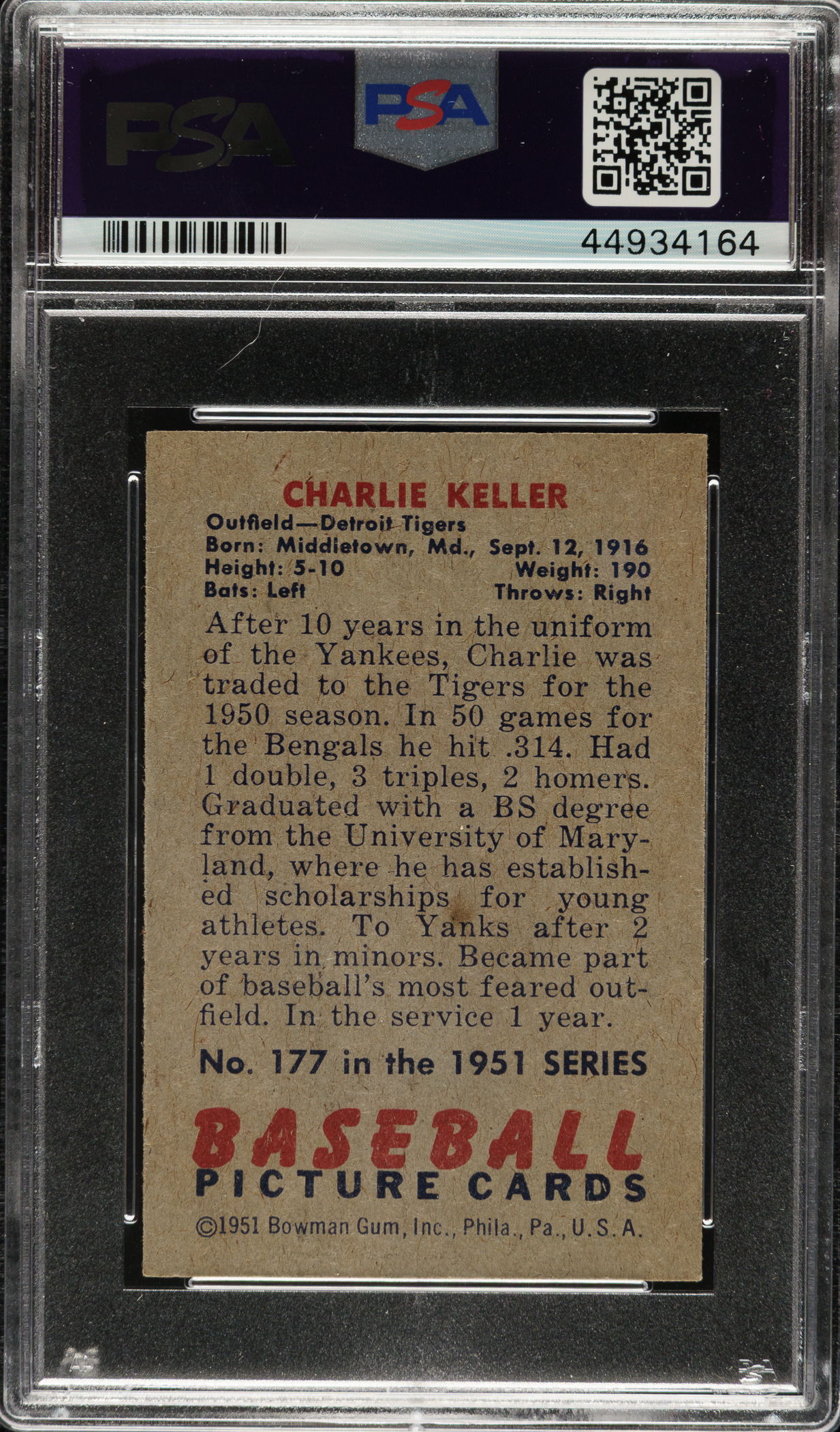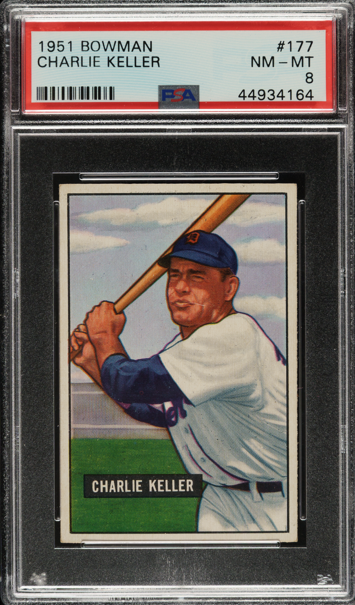 Lot # 1375: 1951 Bowman #177 Charlie Keller PSA NM-MT 8