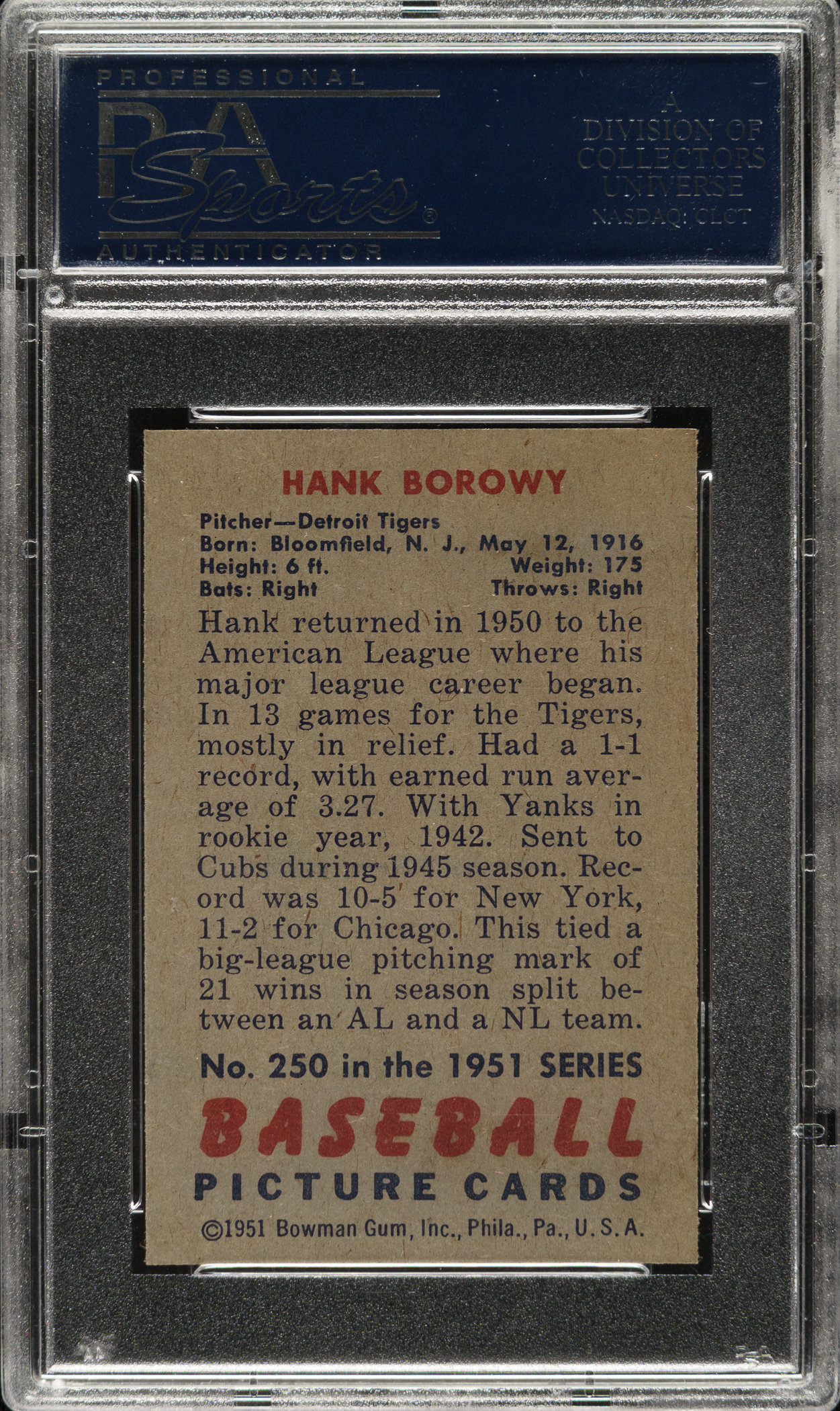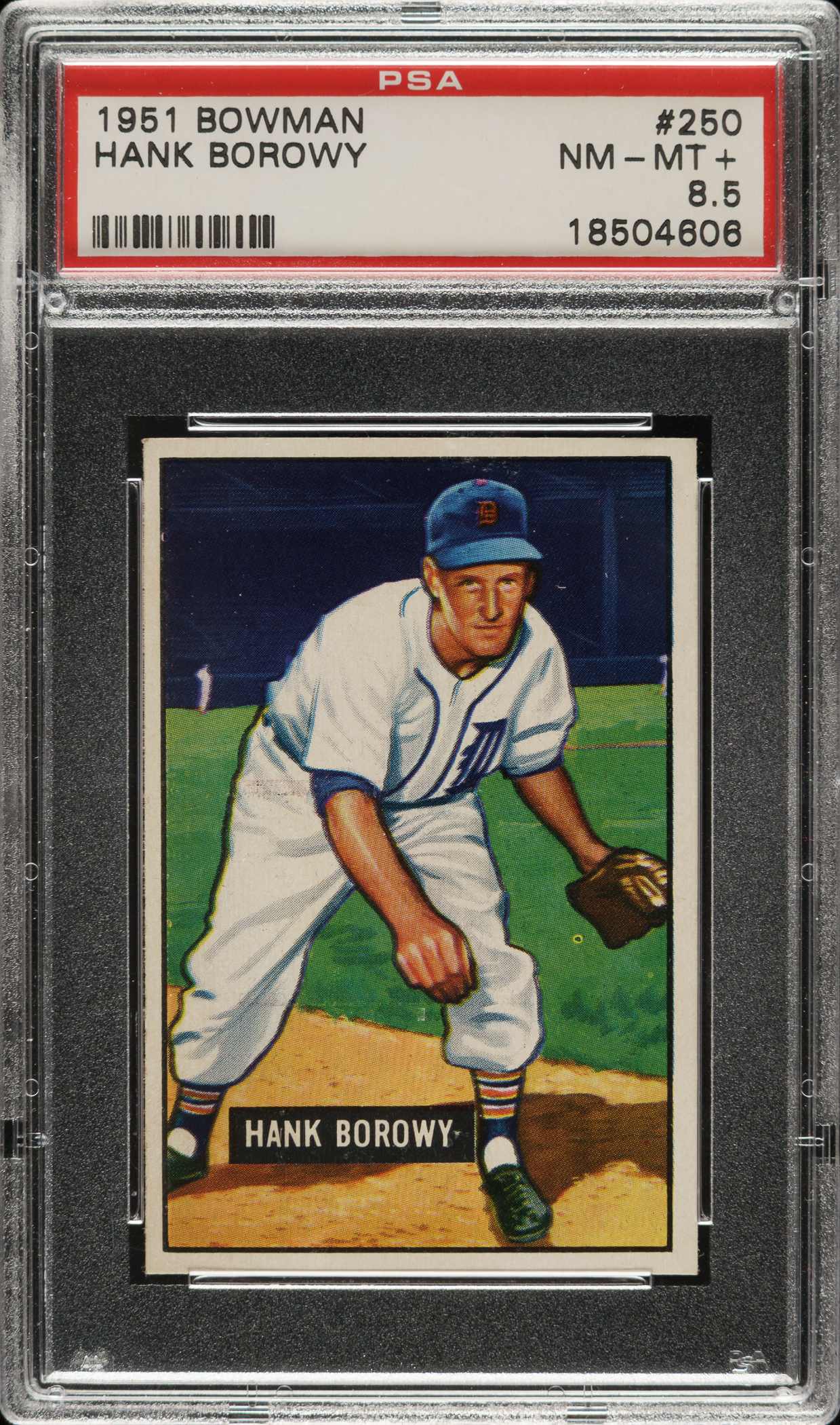 Lot # 1385: 1951 Bowman #250 Hank Borowy PSA NM-MT+ 8.5
