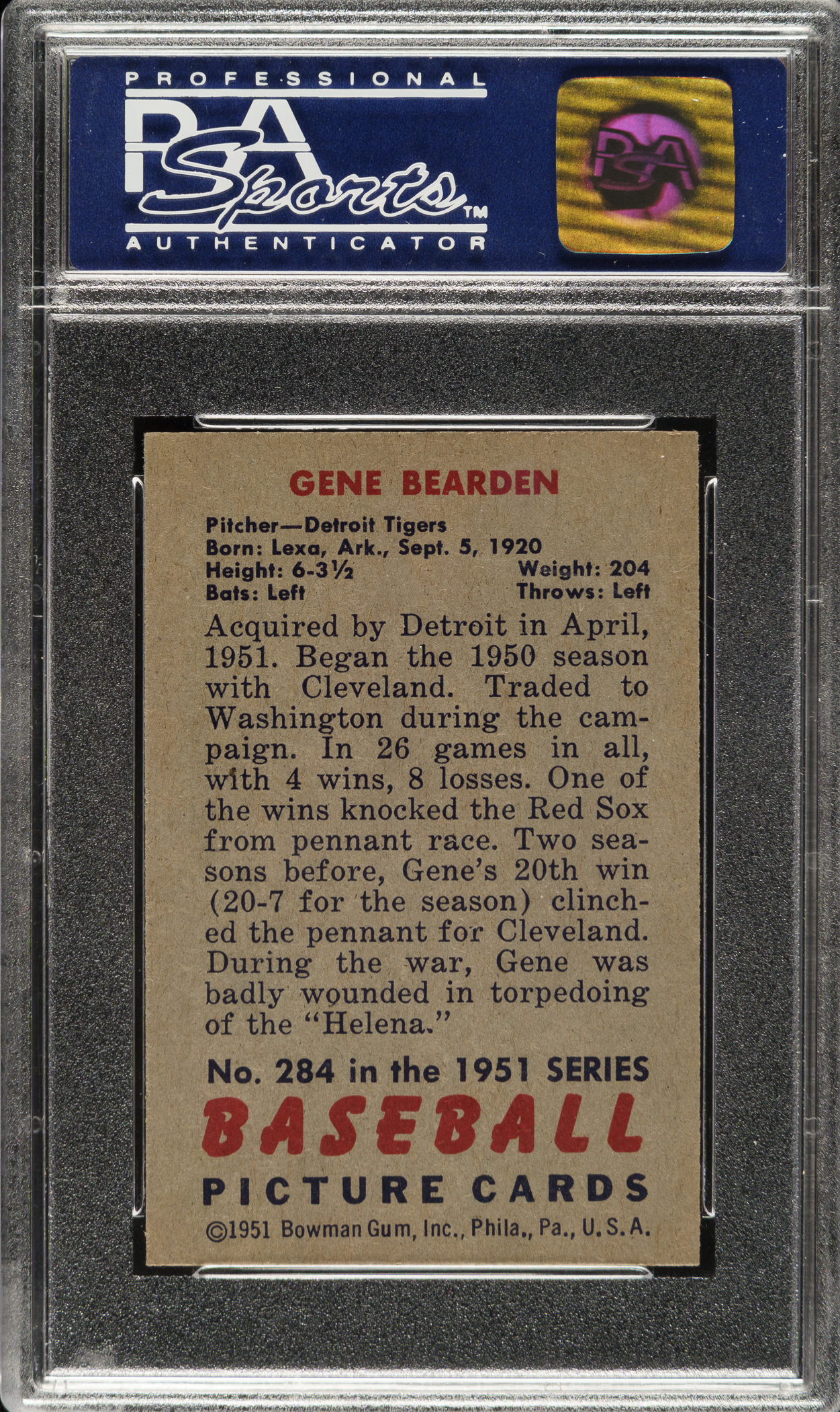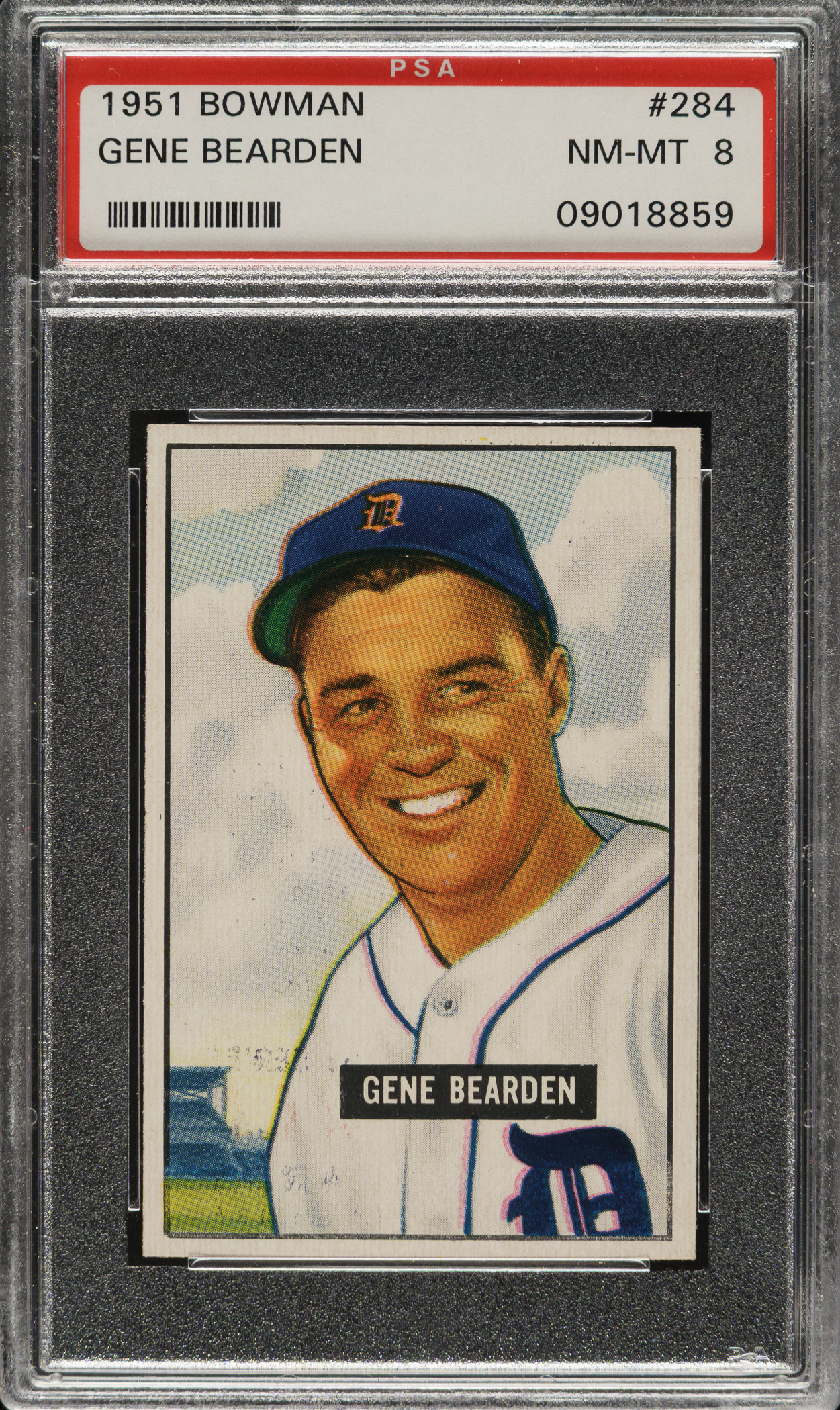 Lot # 1387: 1951 Bowman #284 Gene Bearden PSA NM-MT 8