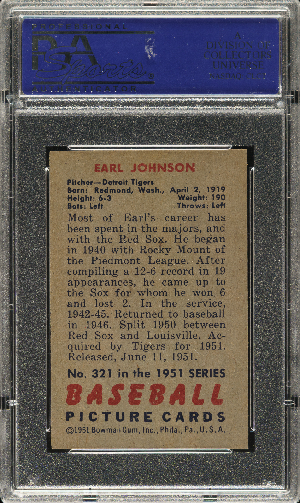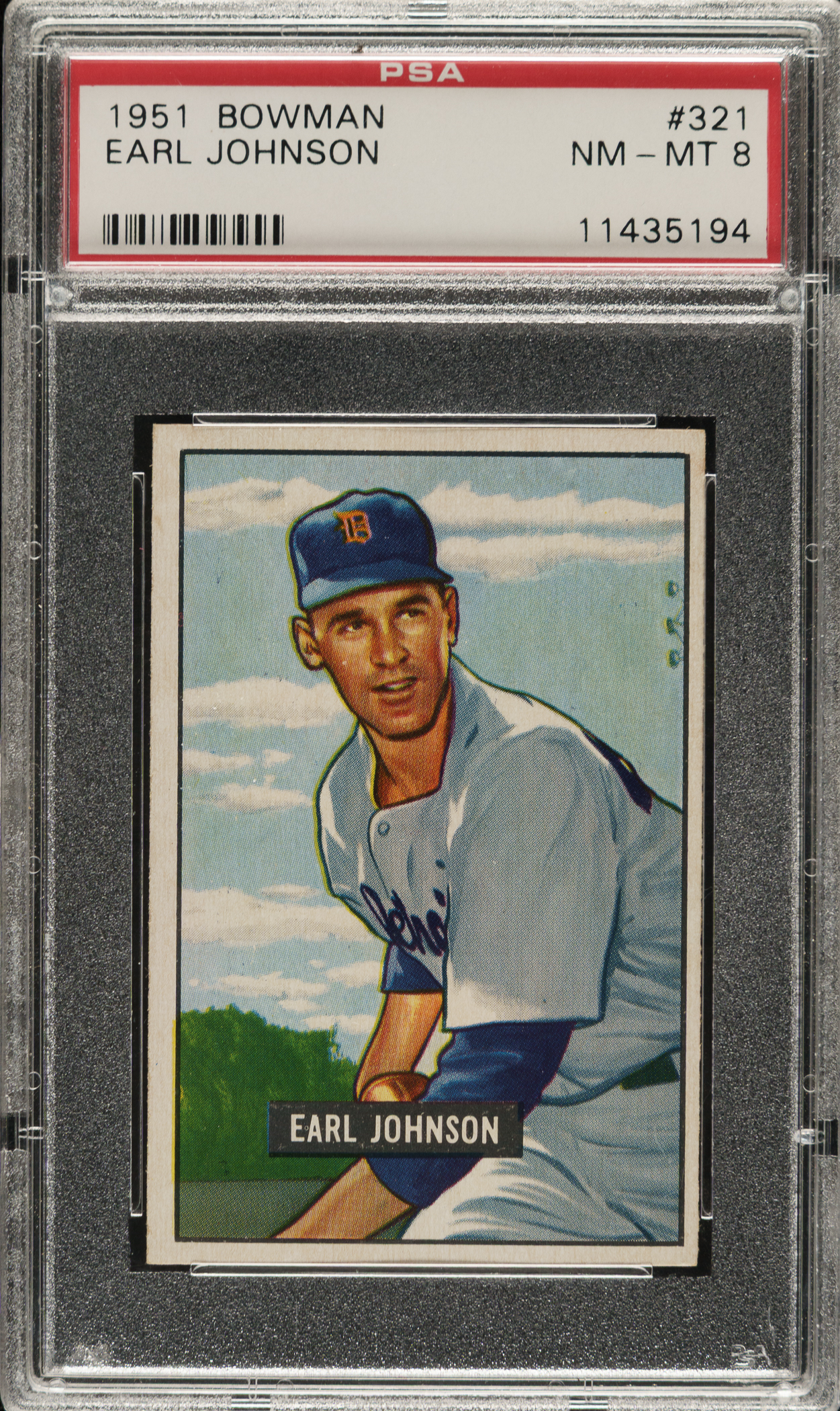 Lot # 1393: 1951 Bowman #321 Earl Johnson PSA NM-MT 8