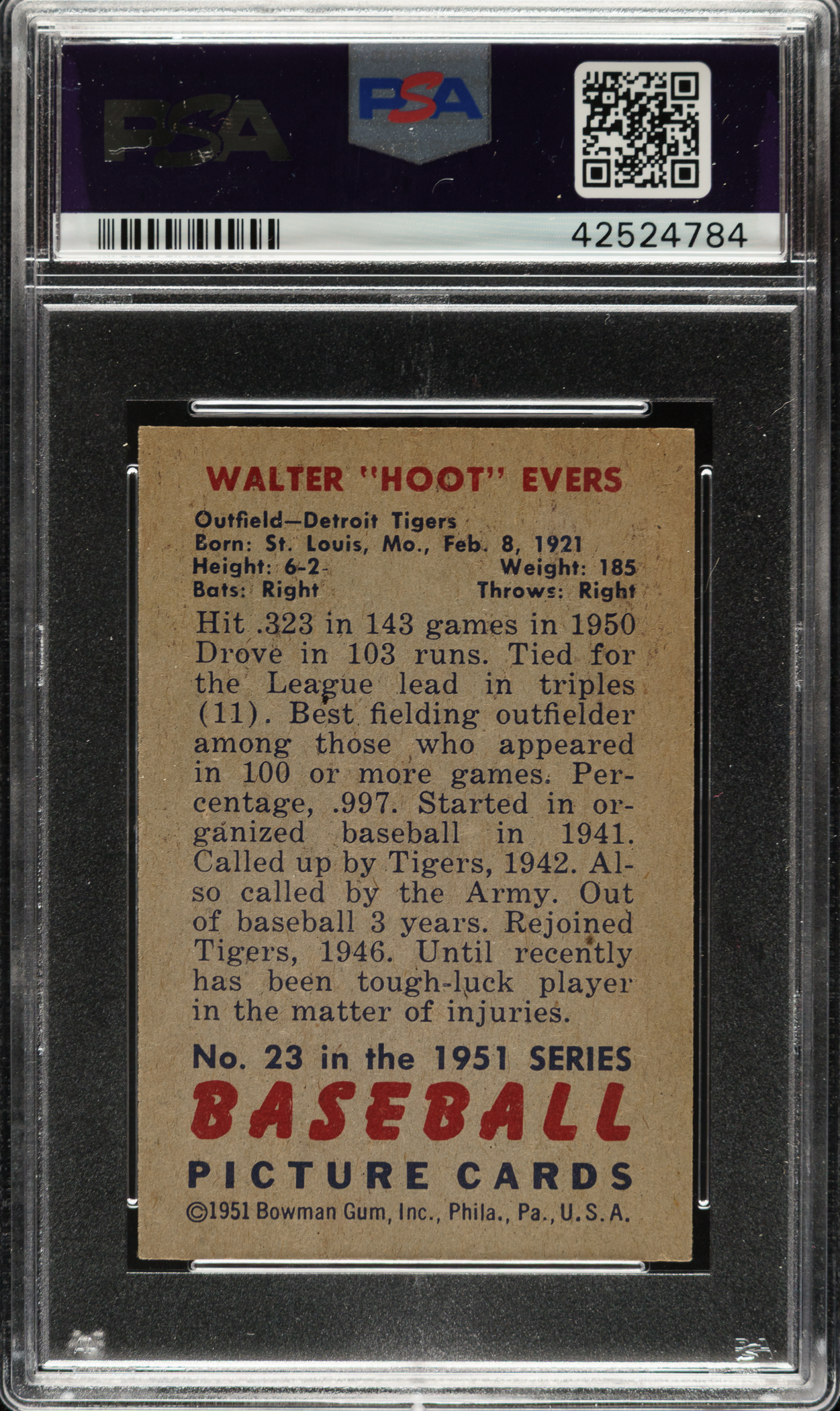 Lot # 1381: 1951 Bowman #23 Walter "Hoot" Evers PSA NM 7