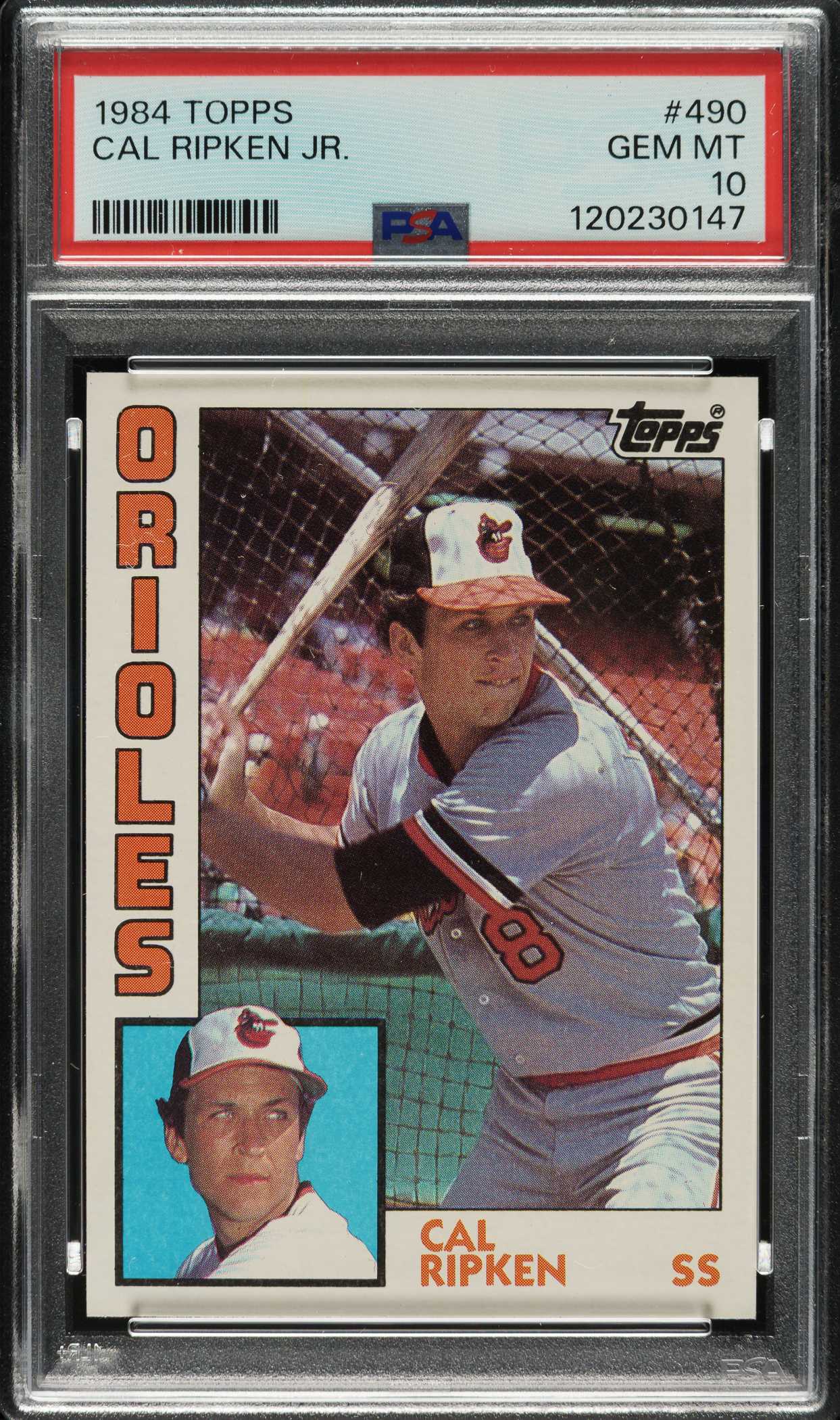 Graded GEM MINT 10 by PSA. Baltimore Orioles Hall of Famer Cal Ripken Jr.