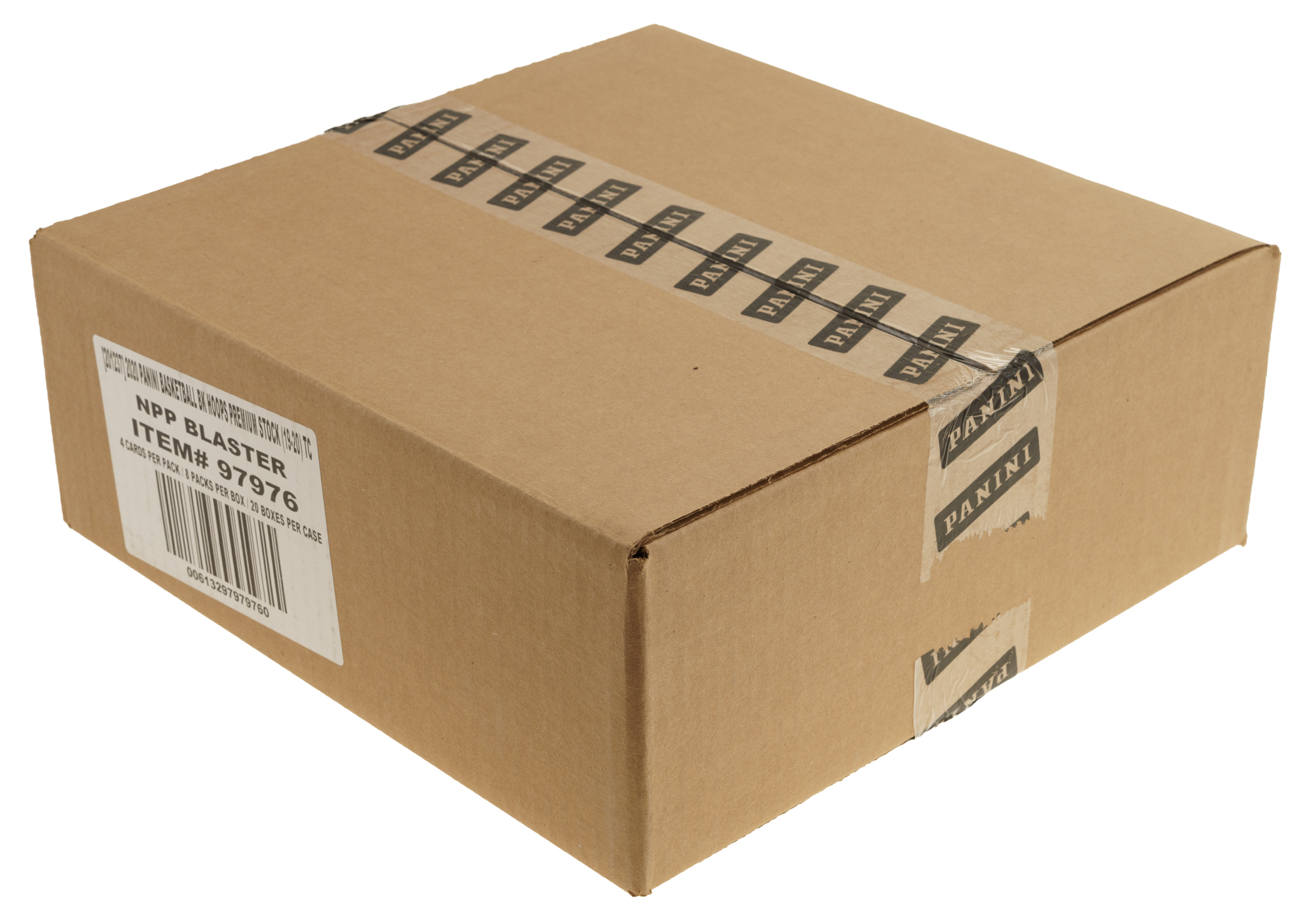 Presented is an unopened blaster case of 2019-2020 Panini NBA Hoops Premium Stock basketball. The case houses twenty boxes, with each box containing 32 cards for a total of 640 cards. The 2019-2002 Panini NBA Hoops Premium Stock set is highlighted by the rookie cards of Zion Williamson and Ja Morant. The case comes factory-sealed by Panini and displays minimal shelf wear. The size/weight of this item requires that there will be an additional shipping charge for this lot.