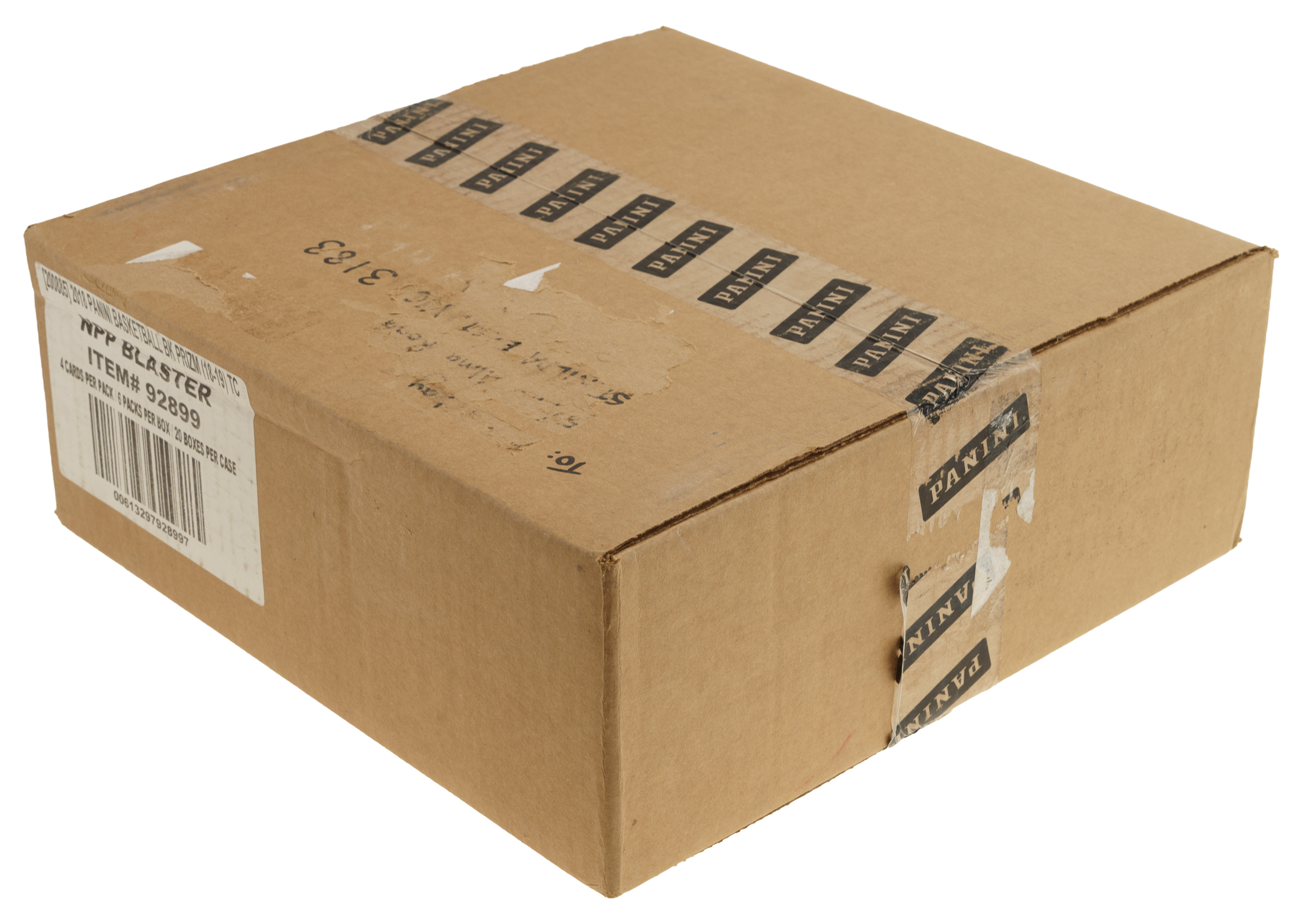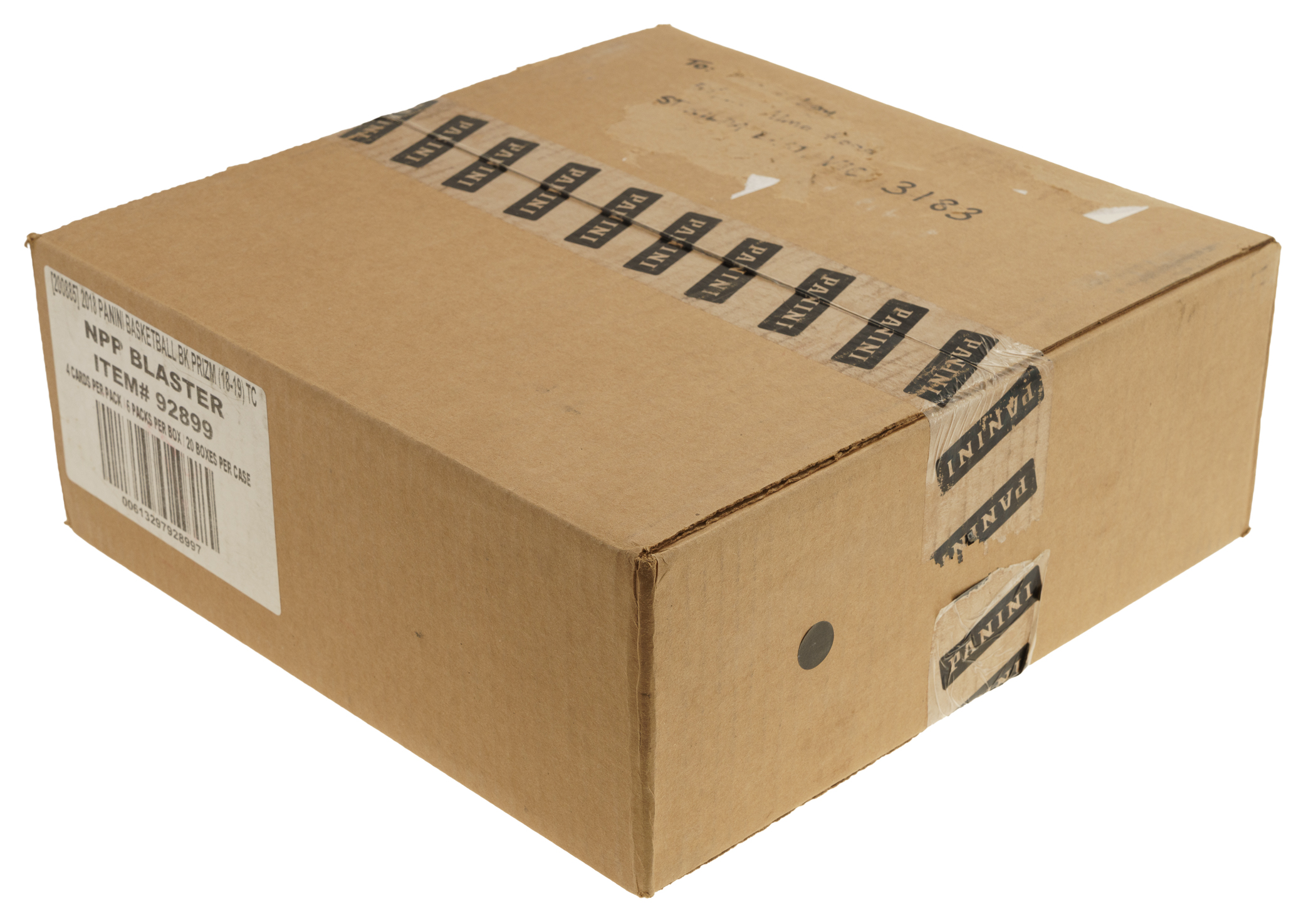 Presented is an unopened blaster case of 2018-2019 Panini Prizm Basketball. The case houses 20 boxes, with each box containing 24 cards for a total of 480 cards. The 2018-2019 Panini Prizm Basketball set is highlighted by the rookie cards of Luka Doncic, Shai Gilgeous-Alexander, Jalen Brunson, and Trae Young. The case comes factory-sealed by Panini and displays light shelf wear. According to Panini's product information, there is one autograph or memorabilia card per box on average. Panini Prizm has emerged as one of the premier modern basketball-card issues, offering collectors important rookies and exciting parallels and insert cards within the product. A 300-card base set, along with numerous parallels and autograph inserts, makes this set one of modern card collecting's most popular and enduring issues. This is an outstanding opportunity to acquire an unopened blaster case of this desirable modern basketball-card issue. The size/weight of this item requires that there will be an additional shipping charge for this lot.