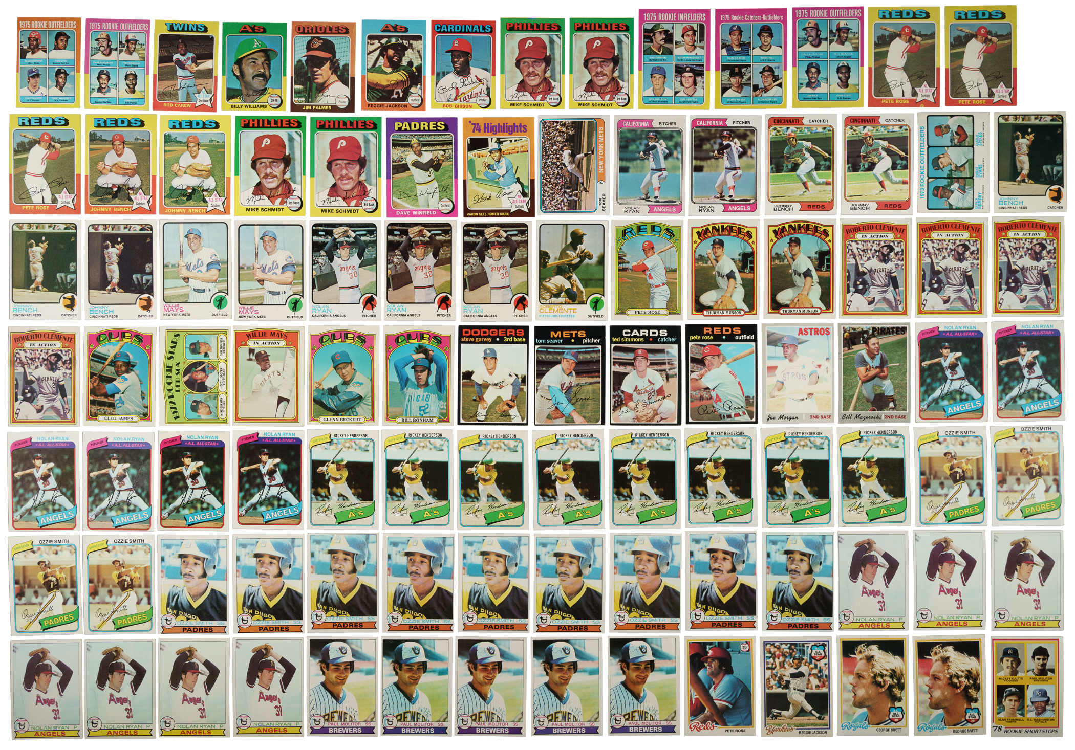 Extremely substantial collection of 12,000+ Topps baseball cards spanning the years 1970 to 1980, highlighted by 904 Hall of Famers, including Nolan Ryan, Johnny Bench, Reggie Jackson, and Tom Seaver. Included are dozens of rookie examples of Hall of Famers, including Mike Schmidt, Dennis Eckersley, three Eddie Murray, nine Ozzie Smith, and nine Rickey Henderson. This collection consists of the following: