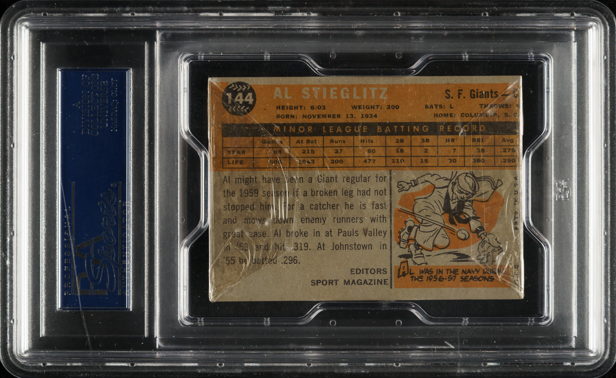 Graded MINT 9 by PSA. Superb original unopened second-series cello pack from the 1960 Topps baseball set featuring #192 Danny O'Connell on top and #144 Al Stieglitz on bottom. Also included in this series are Hall of Famers Nellie Fox, Carl Yastrzemski rookie, and Rival All Stars - Mantle/Boyer. The pack has a tight seal with no staining. A worthy addition to an unopened pack collection or companion to a complete 1960 Topps set.