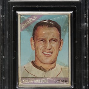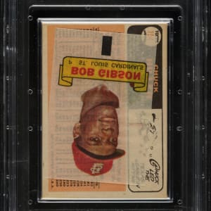 Graded NM-MT 8 by PSA. Original unopened cello pack from the second series of the 1966 Topps baseball set featuring #152 Frank Malzone on front and a Topps Rub-Off insert featuring Bob Gibson on the reverse with card #154 Chuck Hiller beneath the rub-off insert. Included in between could be any number of Hall of Famers and stars (Koufax, Banks, Palmer rookie, Brock, Killebrew, and Ford all appear in this series). The pack displays a tight seal with no staining. A worthy addition to an unopened pack collection or companion to a 1966 Topps set.