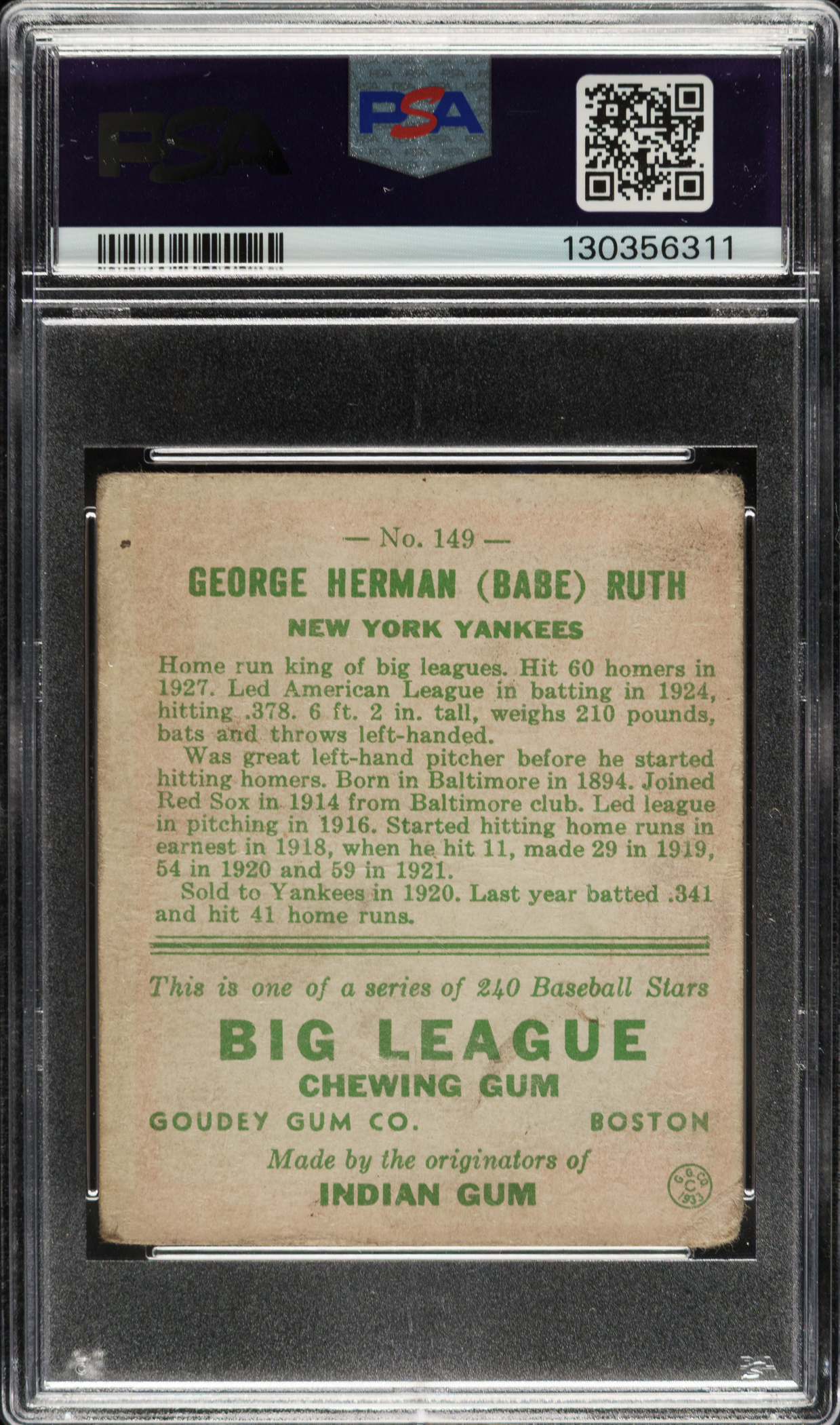 Graded POOR 1 (MC) by PSA (submitted by REA). New York Yankees Hall of Famer Babe Ruth.