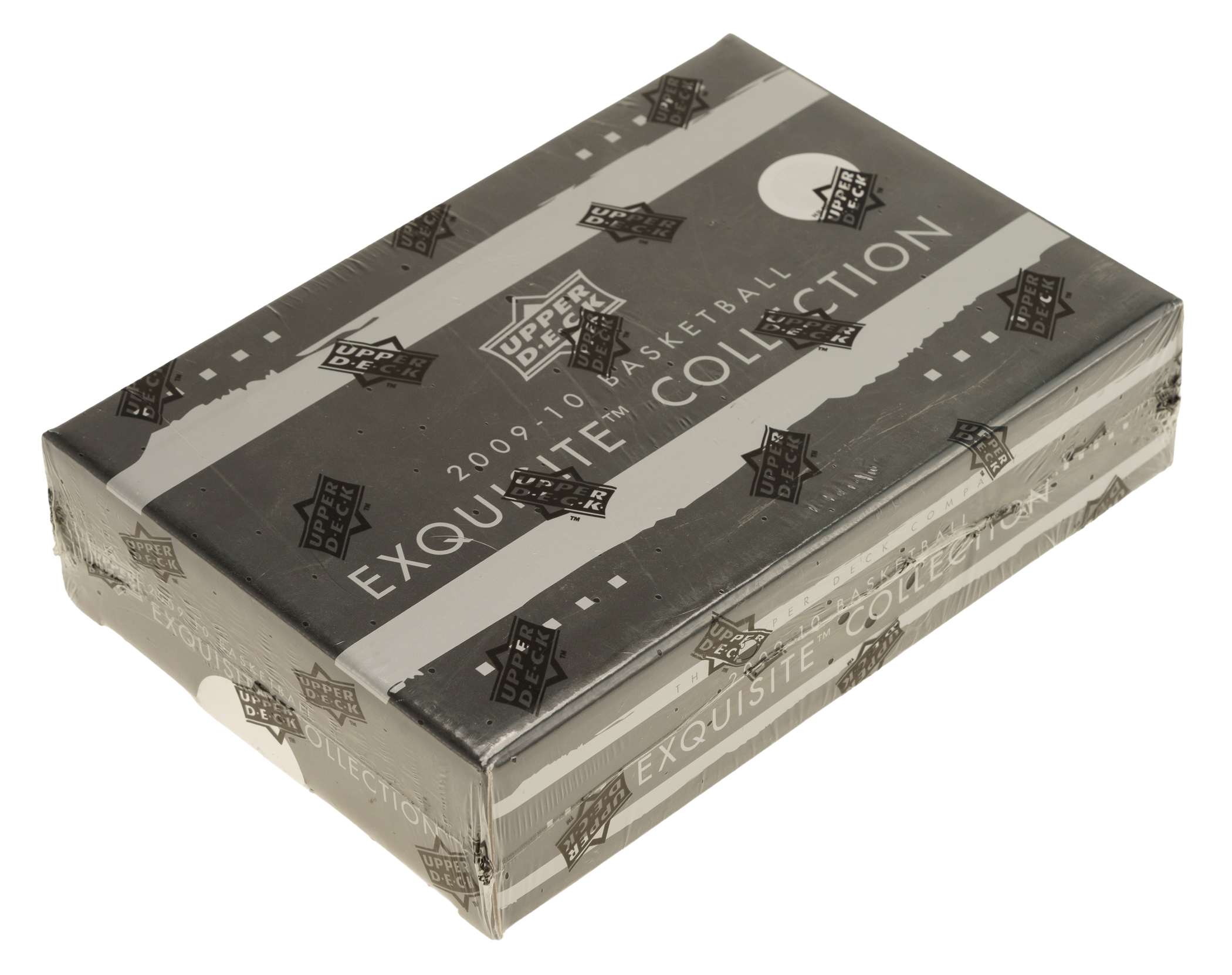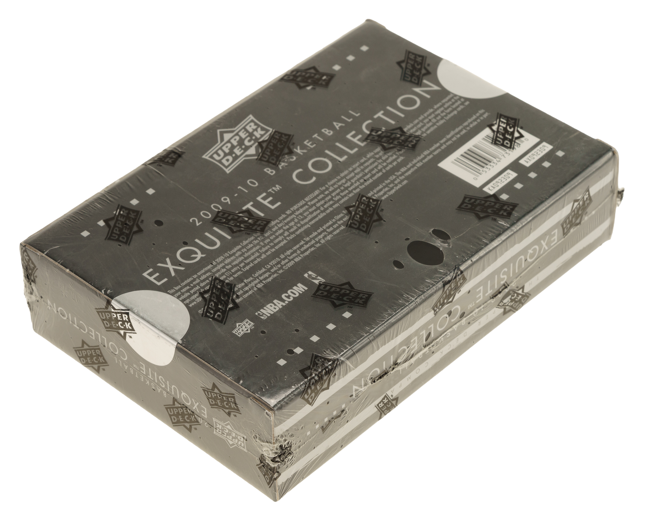 Presented is an unopened 2009-2010 Upper Deck Exquisite basketball hobby box. The box is wrapped in its original factory cellophane. The key to this set is the rookie card of Steph Curry, as well as the rookie cards of James Harden and Blake Griffin. Also included within the set are a wide array of insert cards, including Exquisite Patches and All-NBA Access Triple Logos. An outstanding unopened hobby box from this desirable modern basketball issue.