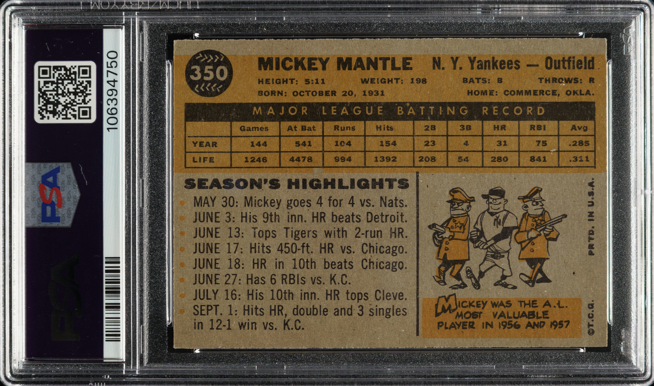 Graded EX-MT 6 by PSA. New York Yankees Hall of Famer Mickey Mantle.