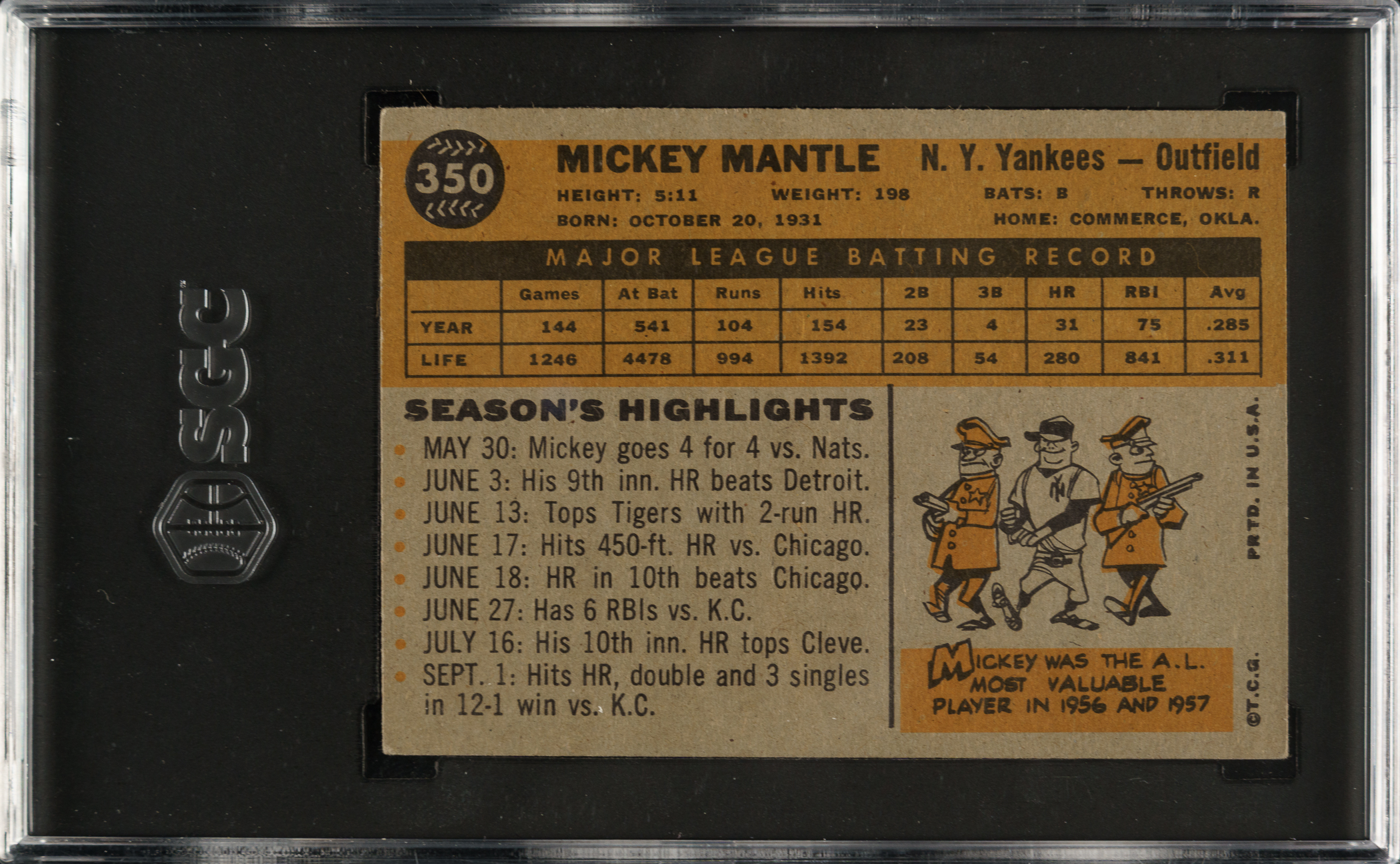 Graded EX+ 5.5 by SGC. New York Yankees Hall of Famer Mickey Mantle.
