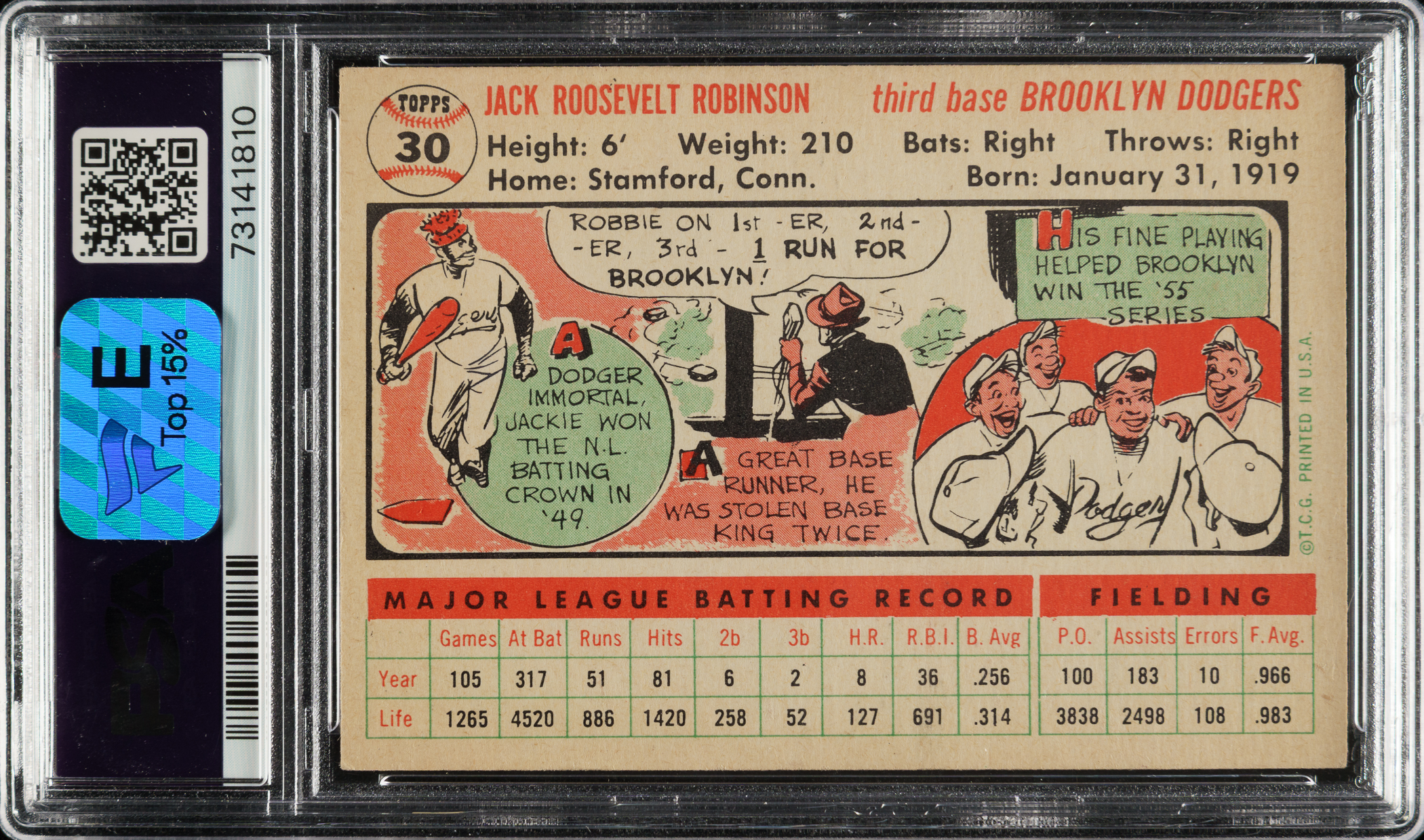 Graded VG-EX 4 by PSA. Brooklyn Dodgers Hall of Famer Jackie Robinson.